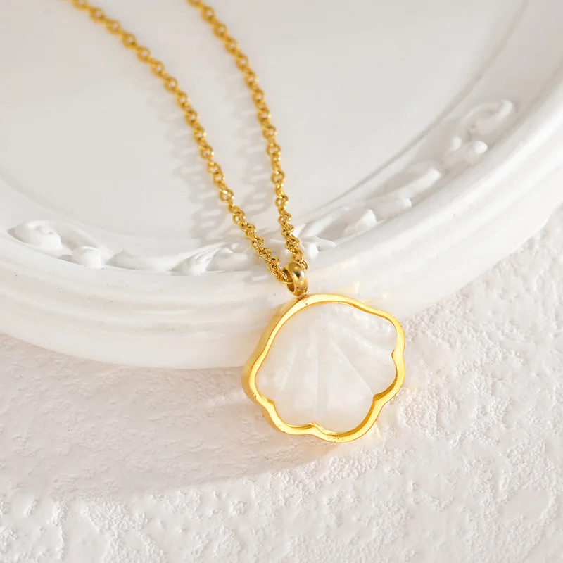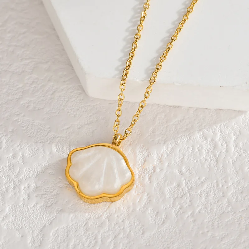 Fine 18k Gold Plated Stainless Steel Pendant Necklace Waterproof Shell Necklace Gift Jewelry for Women