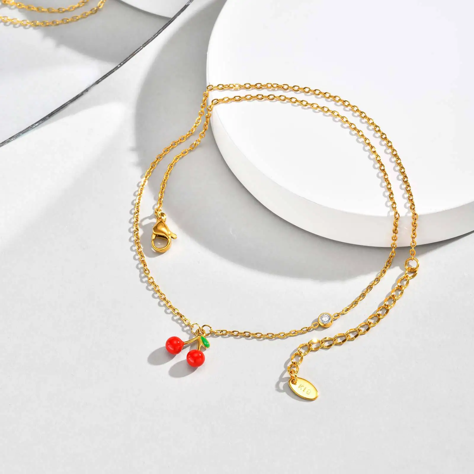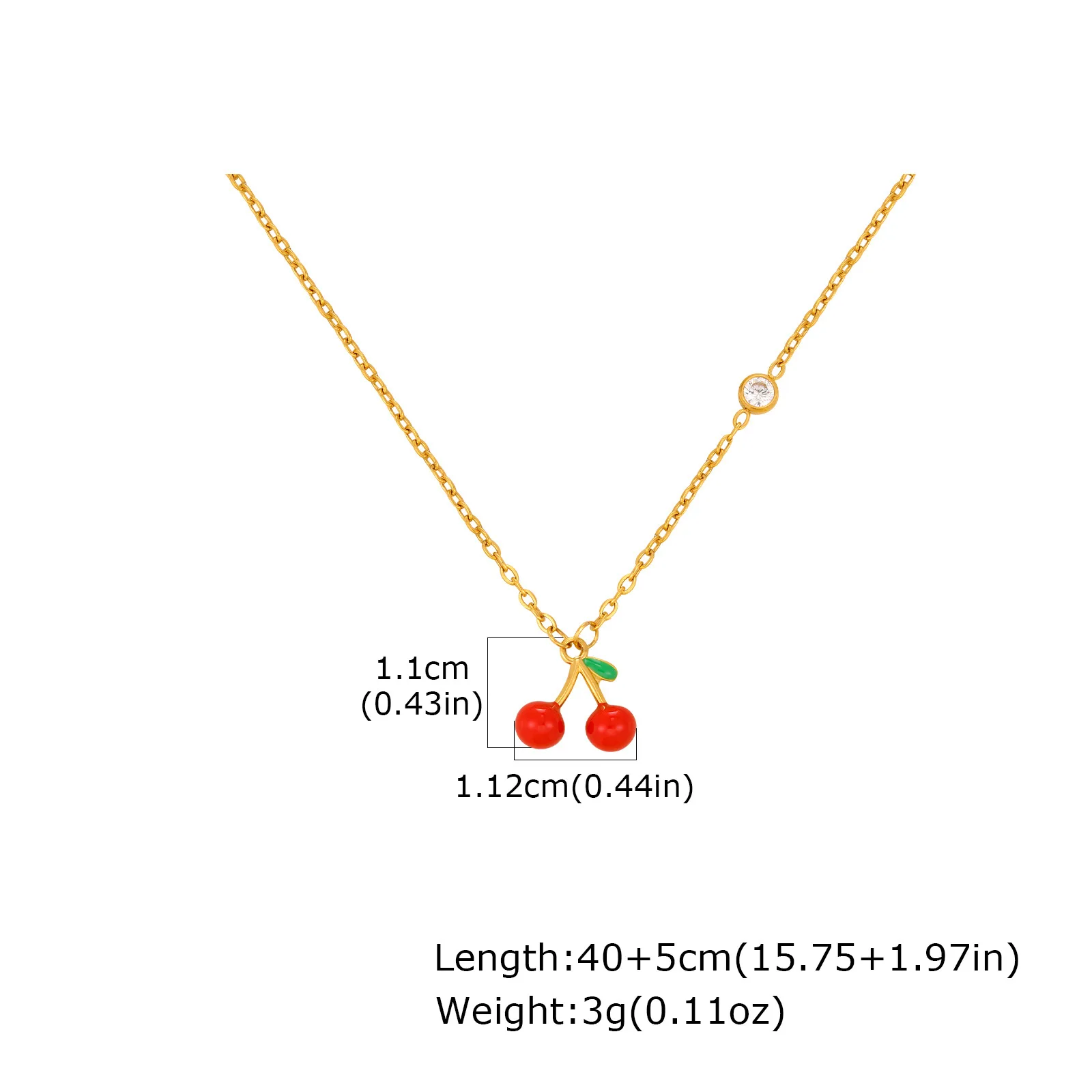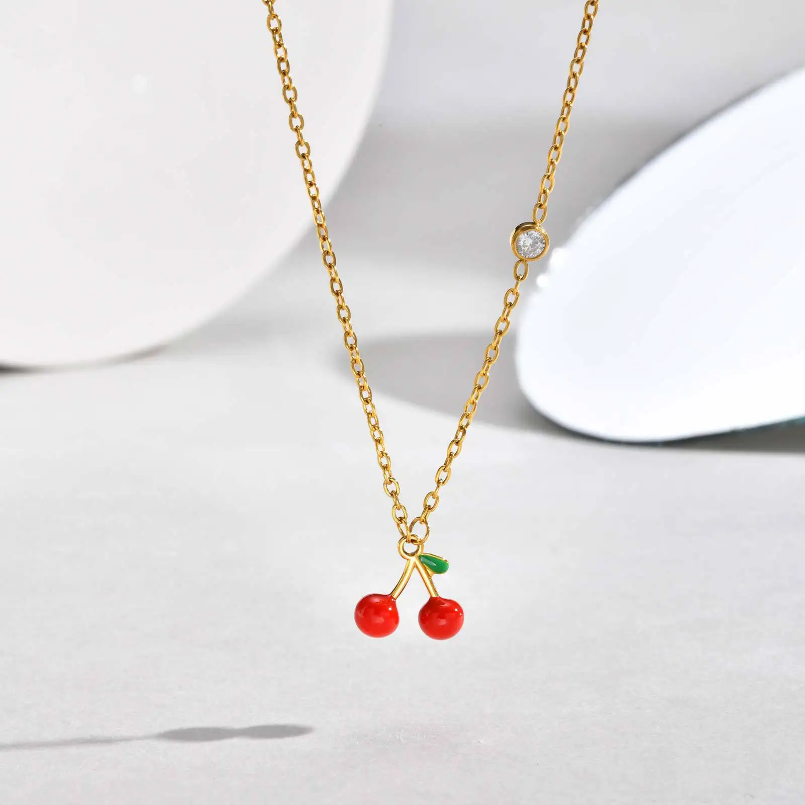 Red Cherry Fashion Necklace 18K Gold Plated Stainless Steel Cubic Zirconia Pendant Light Luxury Women's Jewelry Wholesale