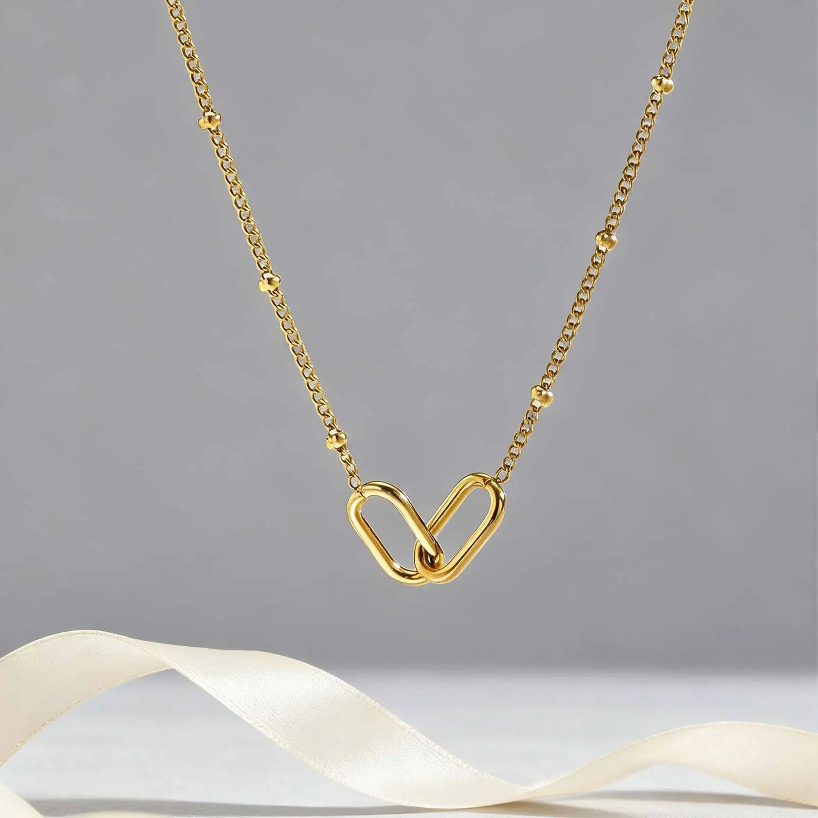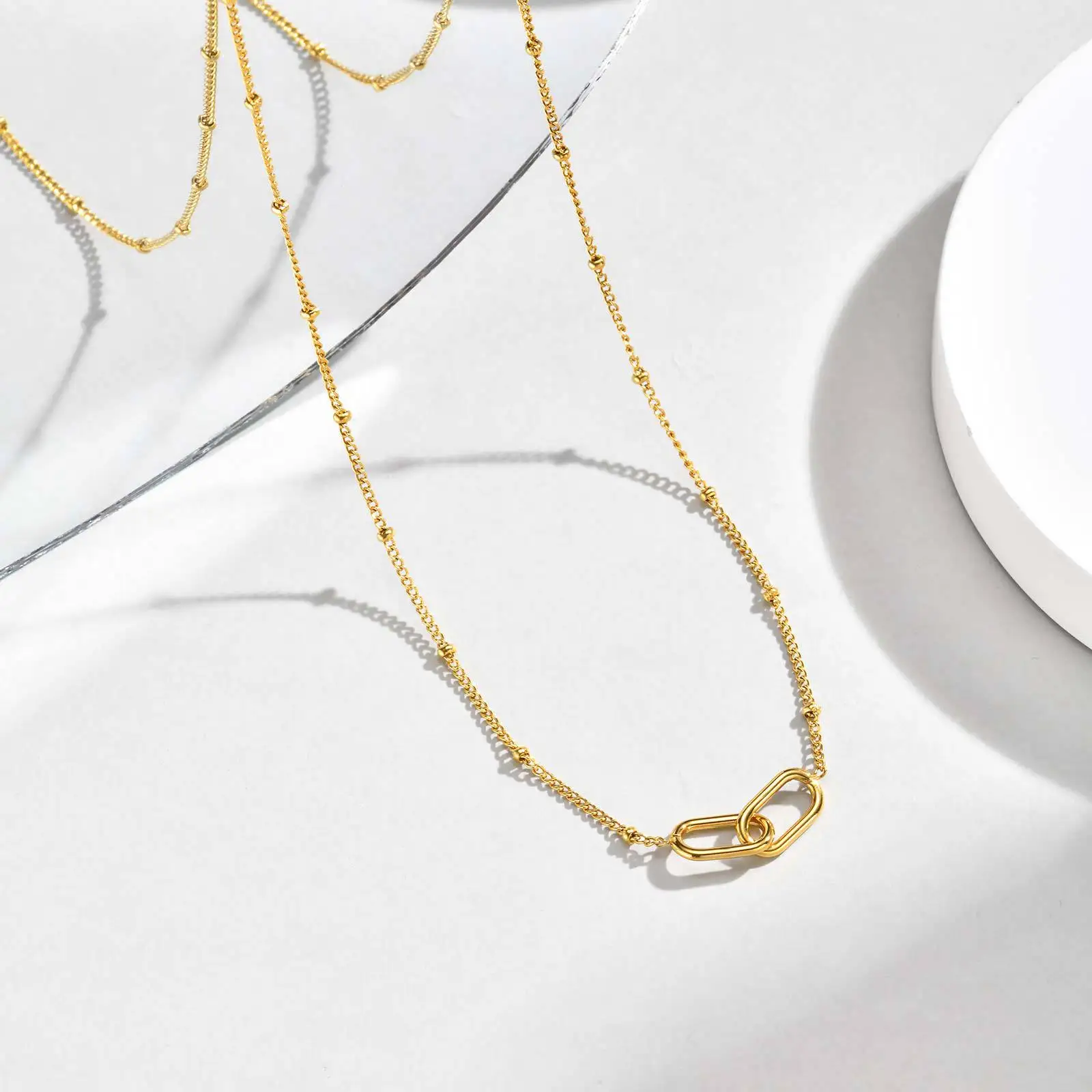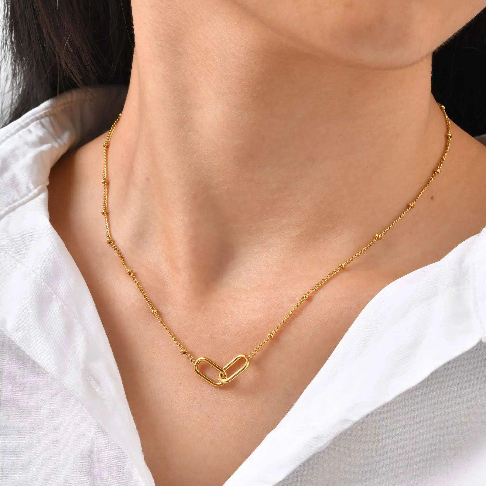 Trendy Stainless Steel Paperclip Necklace for Women, Gold Plated Geometric Statement Pendant Collarbone Chain Jewelry Gift