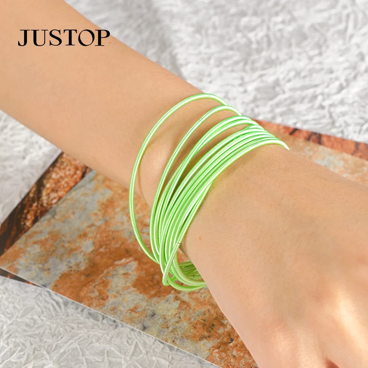 New Simple Stainless Steel Unisex Spring Colorful Guitar String Bracelet Jewelry Set