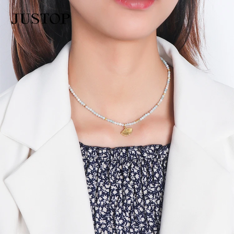 Wholesale Custom Fashion Gold Shell Stainless Steel Beaded Jewelry Pendant Necklace for Women
