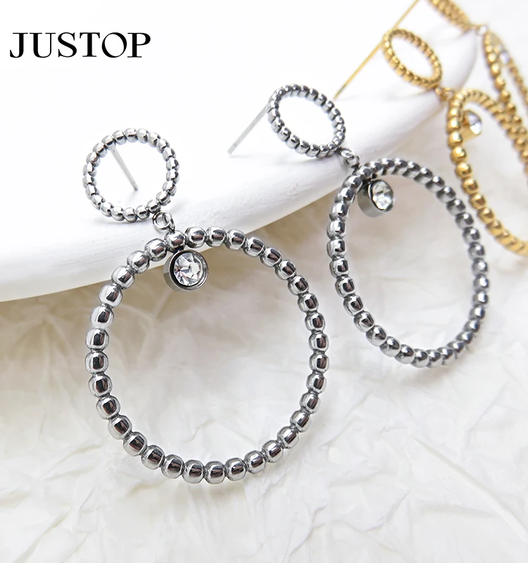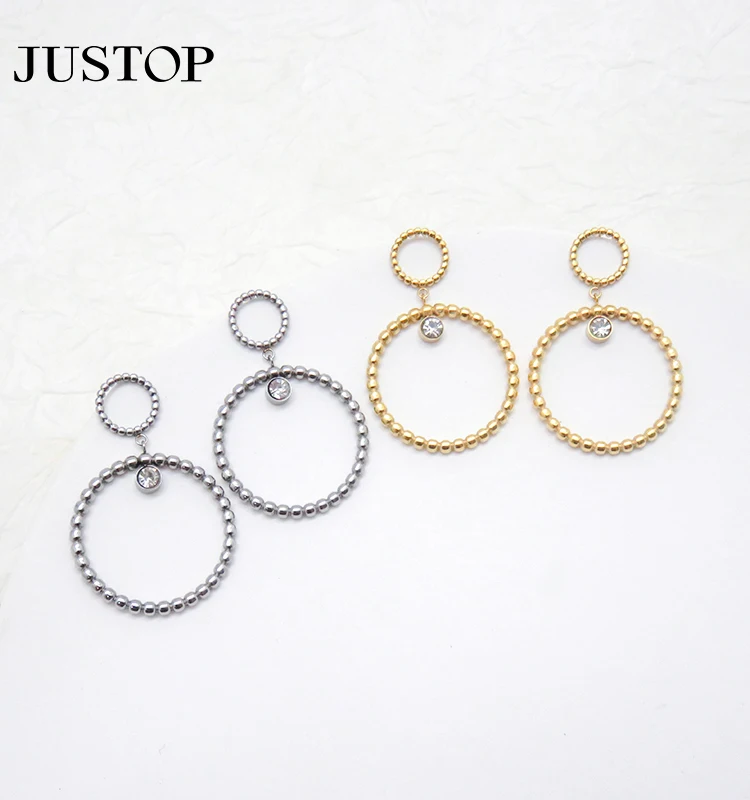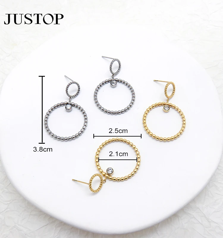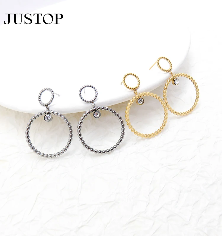 New High Quality Stainless Steel Silver Plated Geometric Double Circle Temperament Stud Drop Earrings