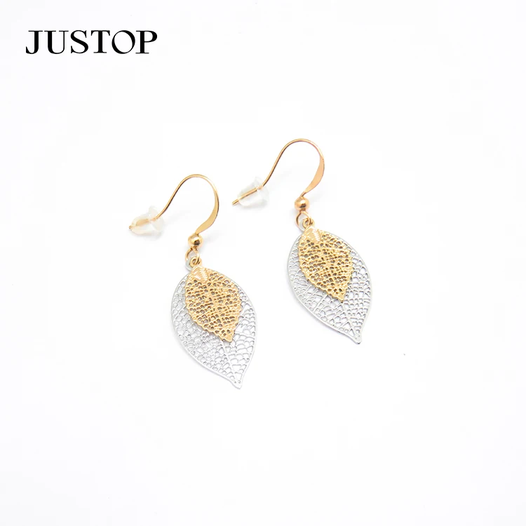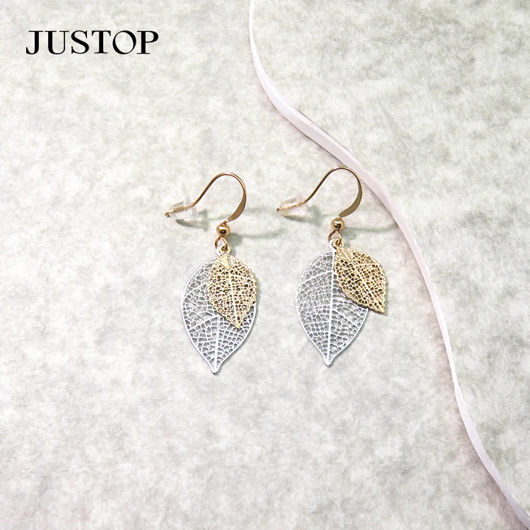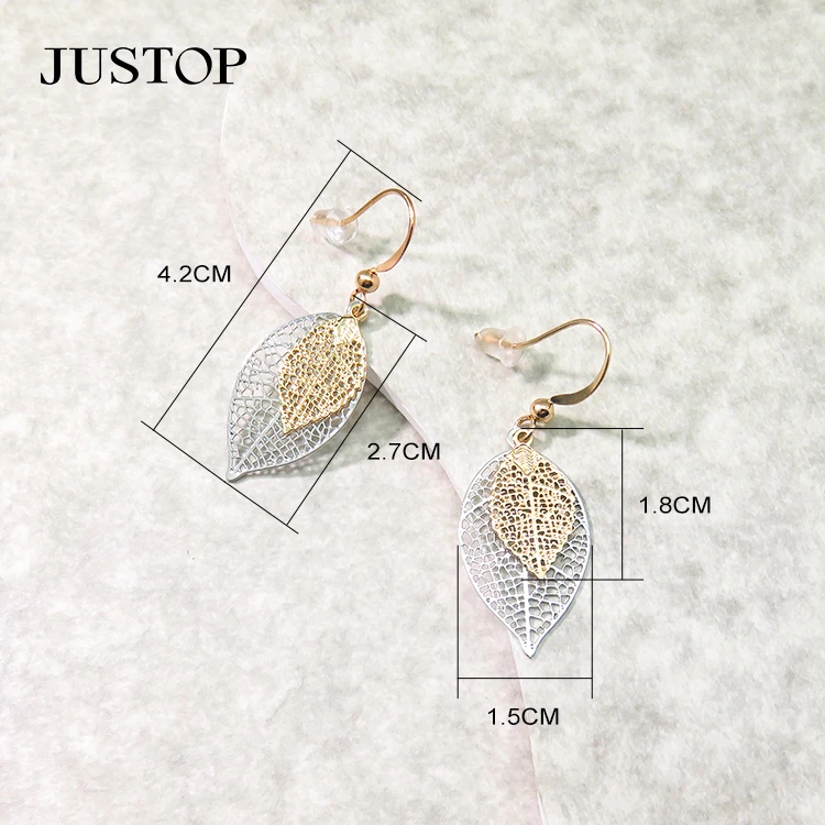Fashion Leaf Desgin Earrings Jewelry for Women Brass 18K PVD Pendant Long Thin Clear Earrings 2 Layers in 1