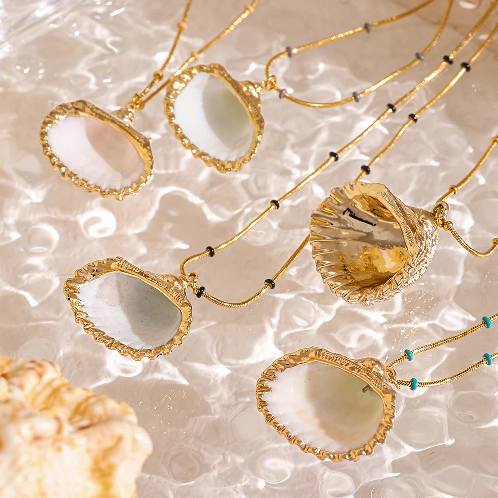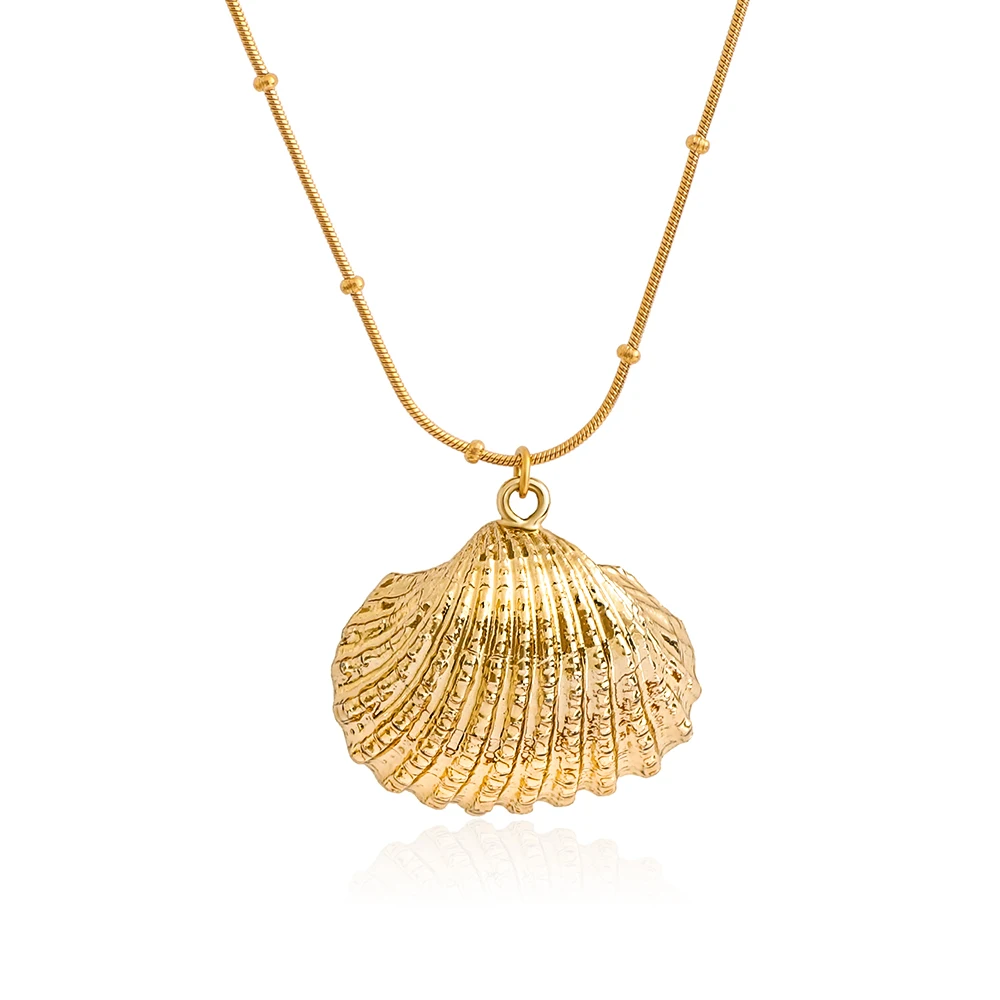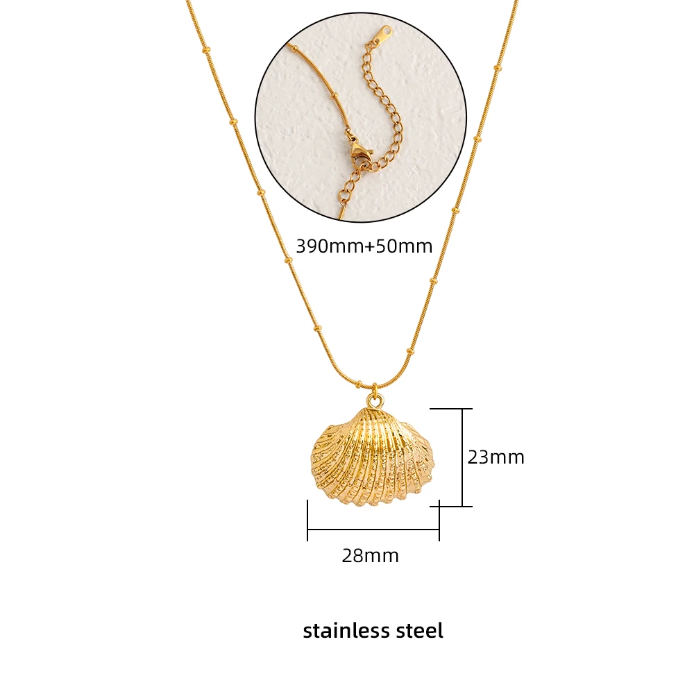 Unisex Summer Trendy Stainless Steel Necklace with Geometric Seashell Starfish Snake Chain for Anniversary Girls Women Jewelry