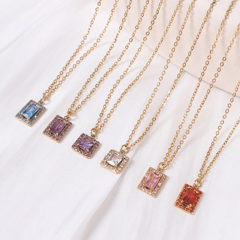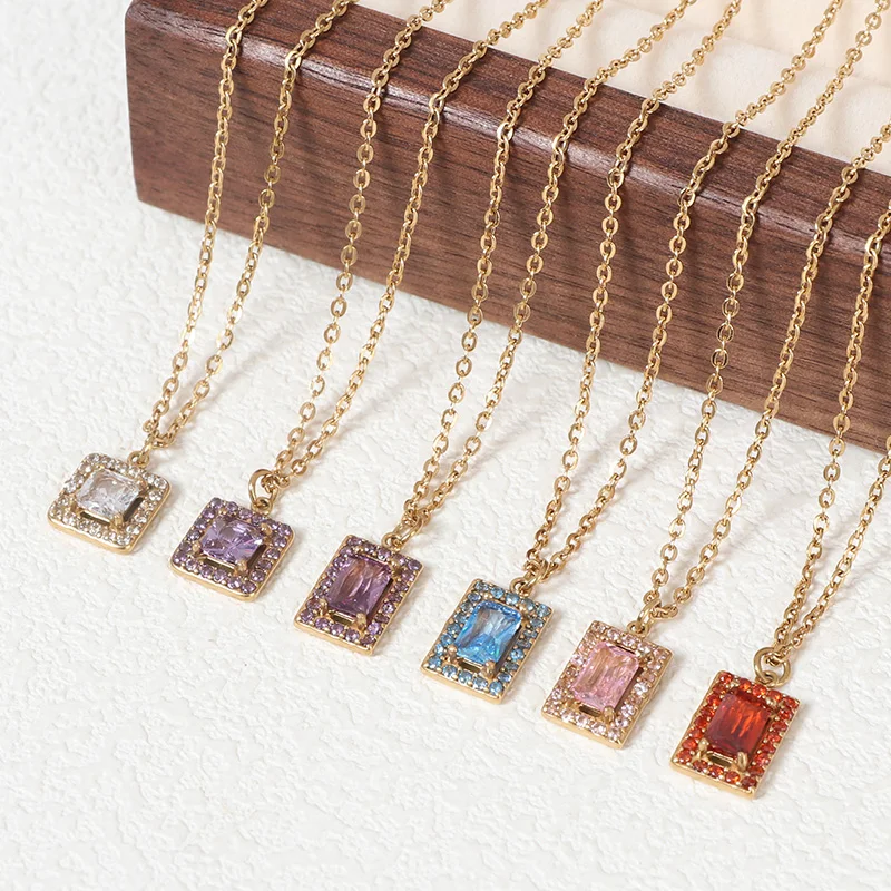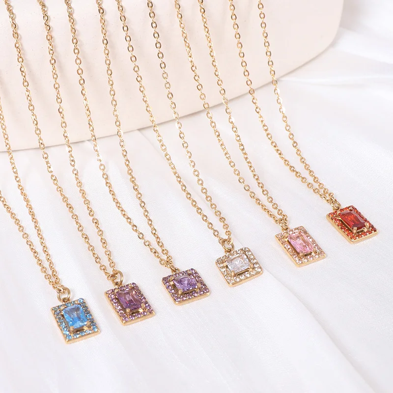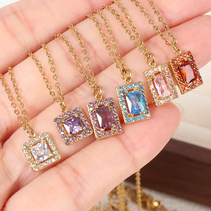 Classic 18K Gold Plated Stainless Steel Cubic Zirconia Stone Pendant Necklace Trendy Crown Shape Gemstone Link Chain Jewelry