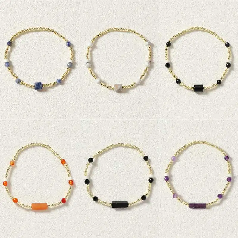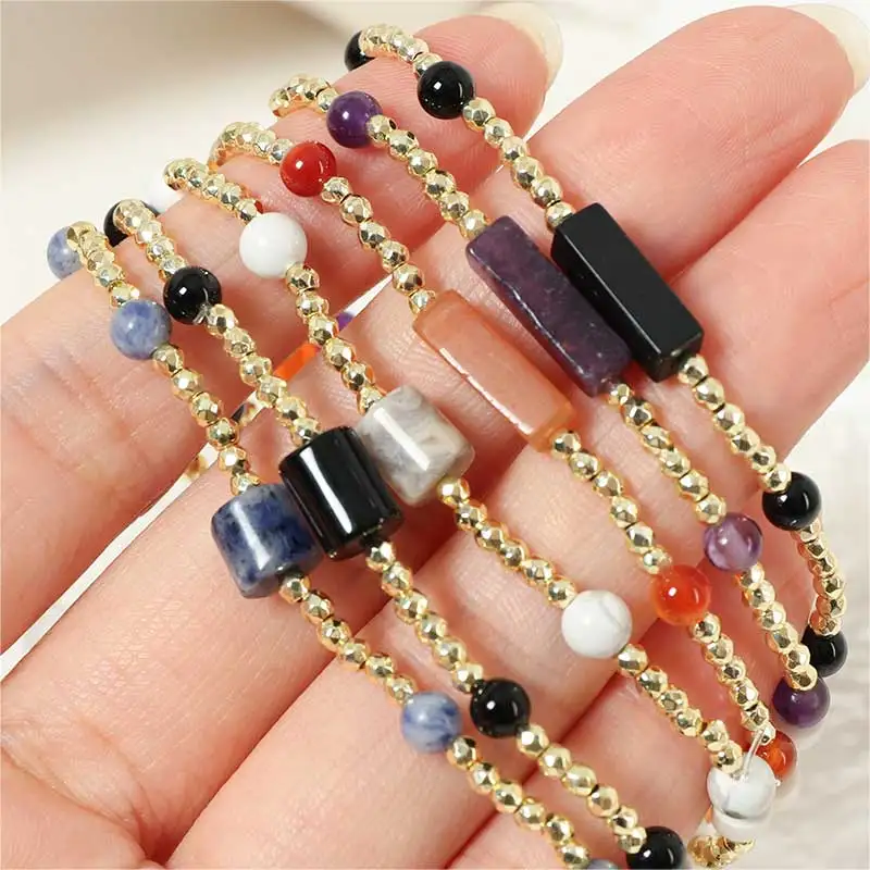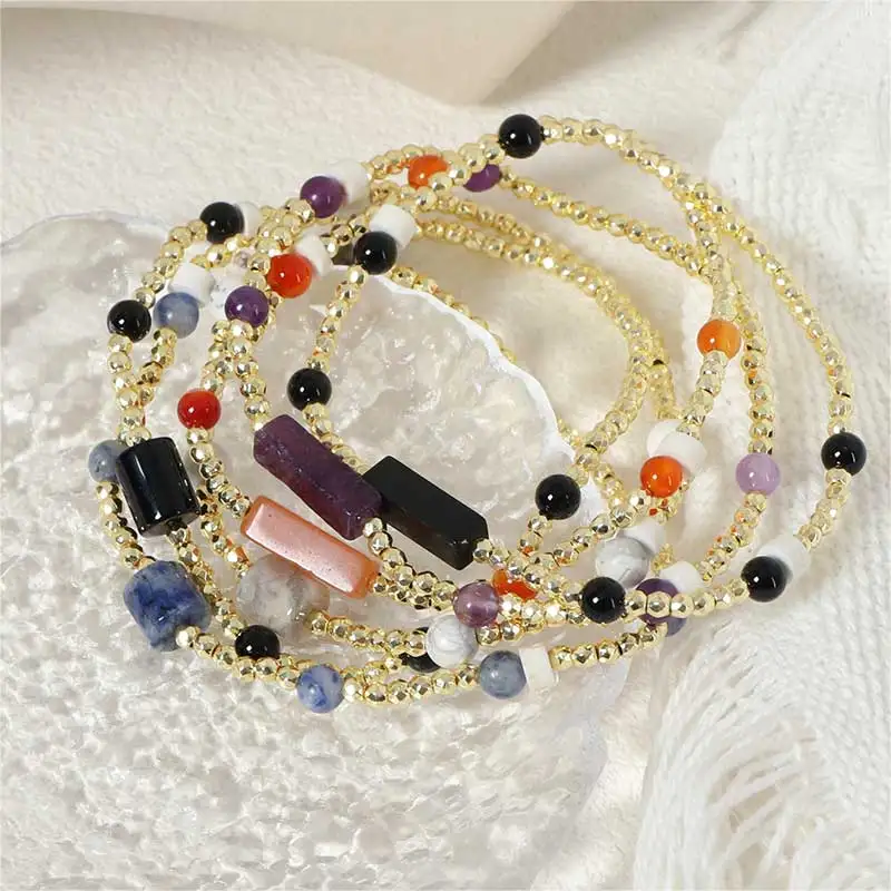 Colorful Natural Stone Beaded Bracelet with Geometric Bead Chain Waterproof Stainless Steel Jewelry for Women for Parties Gifts