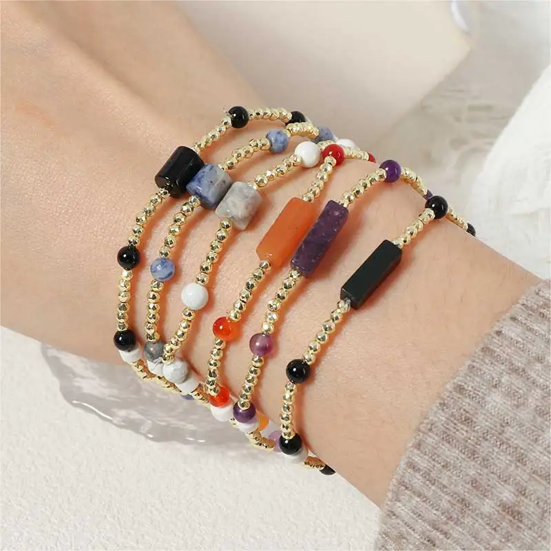 Wholesale 18K Gold PVD Ball Link Chain Bracelet with Healing Stone Charm Natural Crystal Gravels Stainless Steel Jewelry