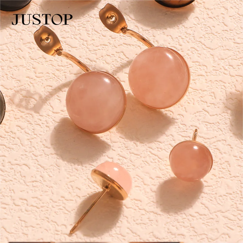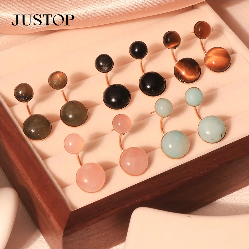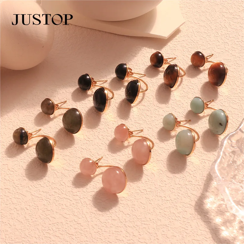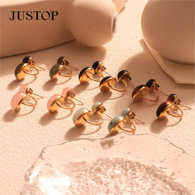 Fashion 18k Gold Plated Stainless Steel Earrings Huggie Dangle Gemstone Earring With Natural Stone