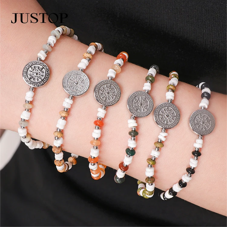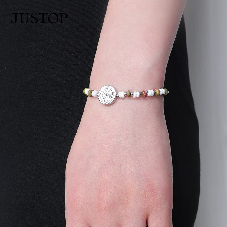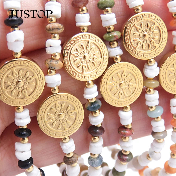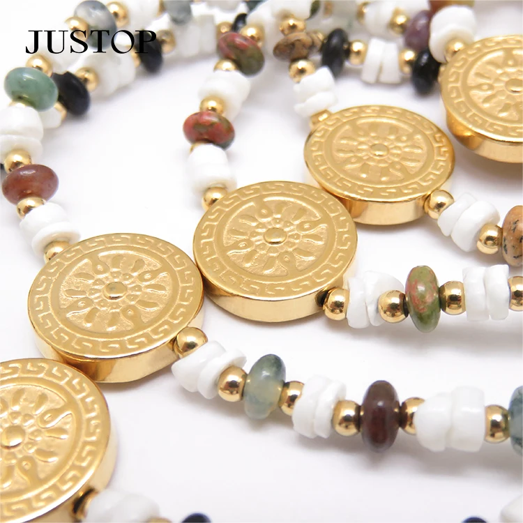 Women New Fashion Band Bracelet 18k Pvd Gold Plated Stainless Steel Geometric Religion Coin Charm Beads Anniversary Jewelry