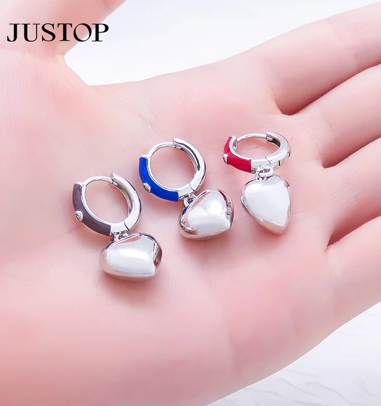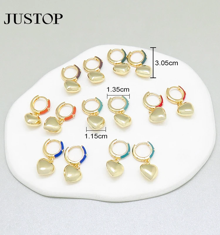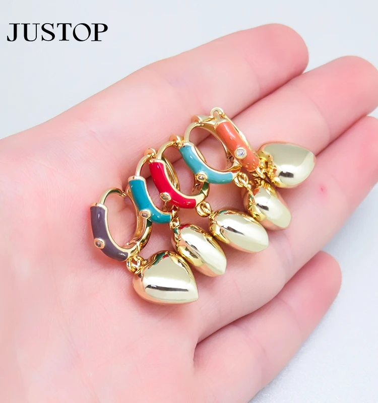Tarnish Free Hypoallergenic Women Hoop Wholesale Waterproof Huggie Brass Gold Plated Heart Charm Pendant Drop Earrings