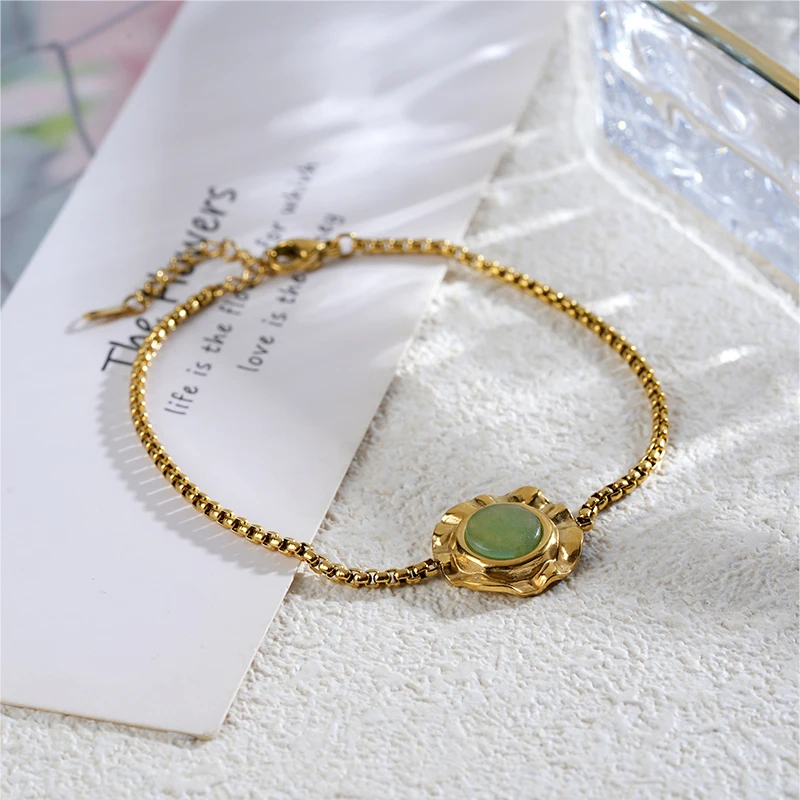 Green Aventurine Stone Charm Bracelets Hypoallergenic Chunky Box Chain for Women and Men Gift Stylish Jewelry