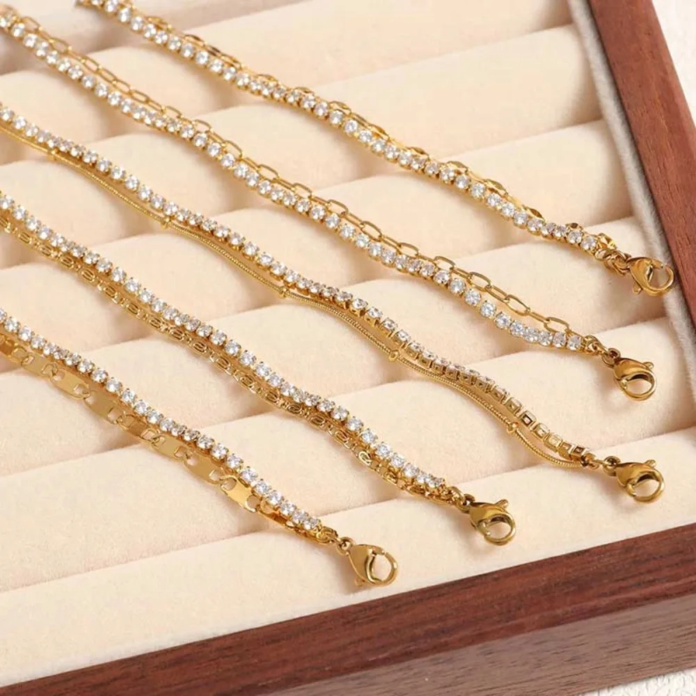 Vintage 18K Gold Plated Women's Fashion Bracelet Trendy Layered Chain Zircon Crystal Pendant Wholesale Price Main Material Brass