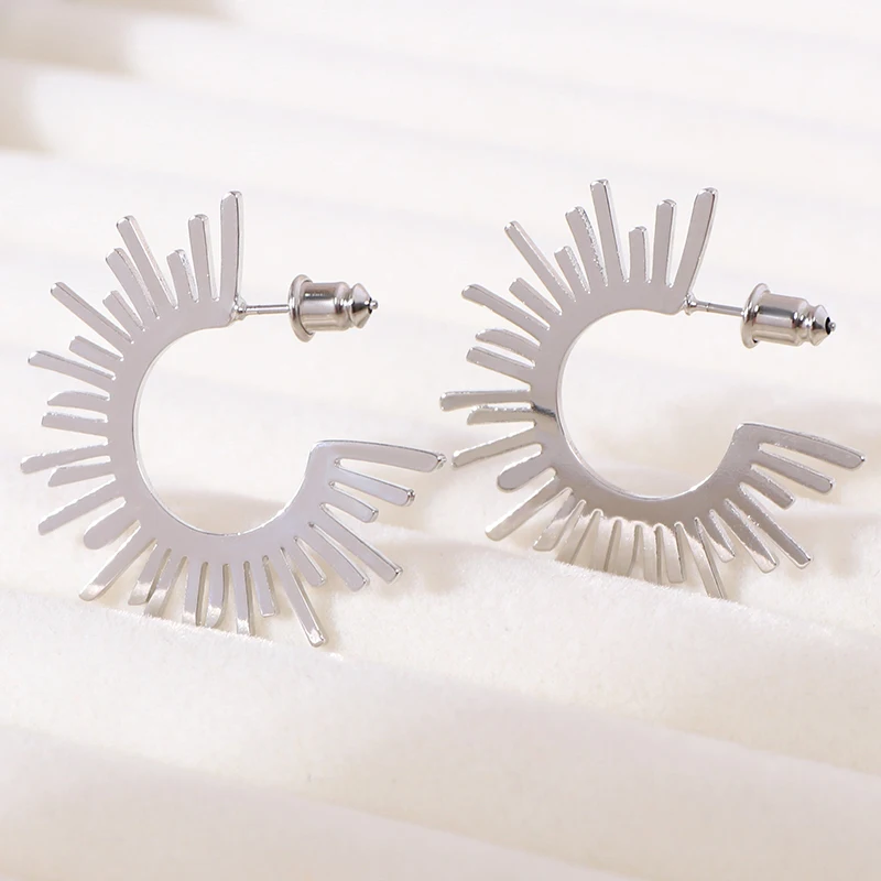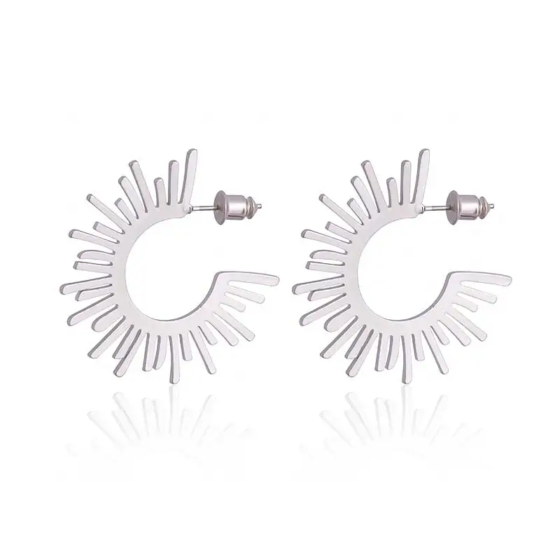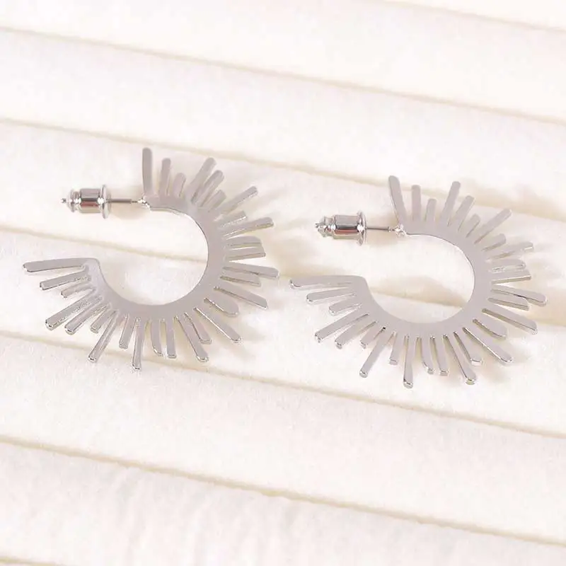 European Style Sun Charm Earrings Minimalist C-shaped Ear Studs Retro Jewelry Women Ins Viral Dainty Earrings Wholesale