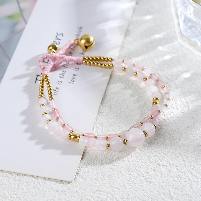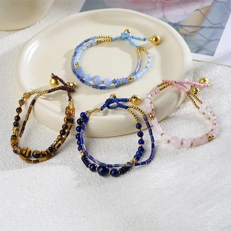 Adjustable Real 18K Gold Plated Stainless Steel Beaded Bracelet Cute Style with Stone Ball Chain Hypoallergenic Fashion Jewelry