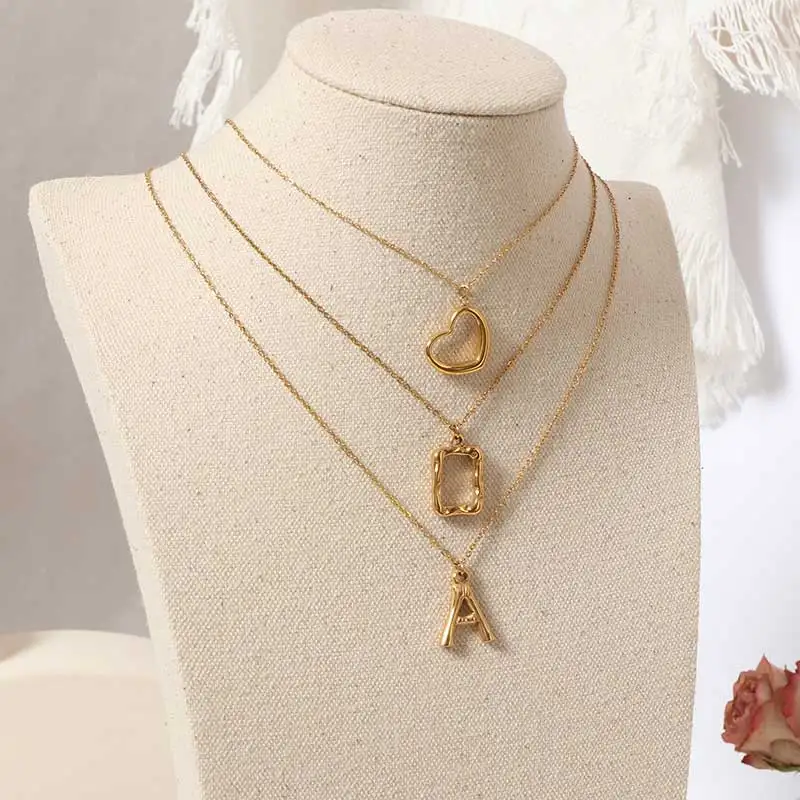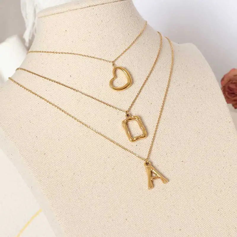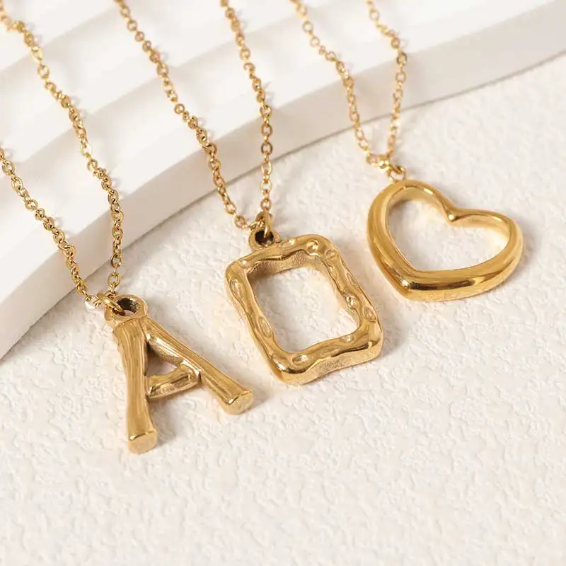 26 Letter Creative Women's Dainty Initial Gold Plated Charms Necklace Link Chain Choker with Heart Shape Pattern for Party