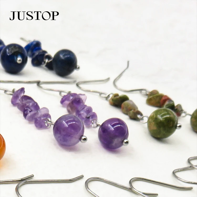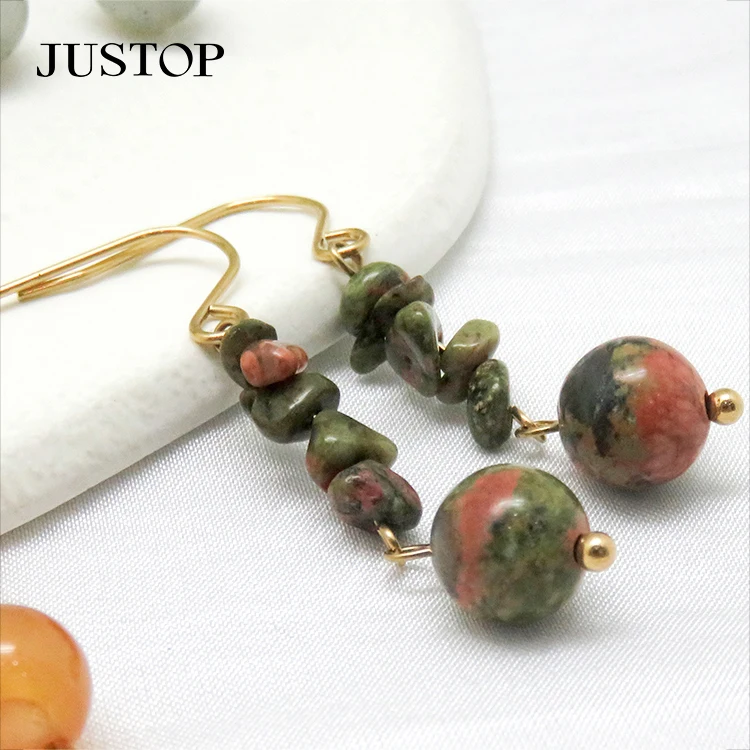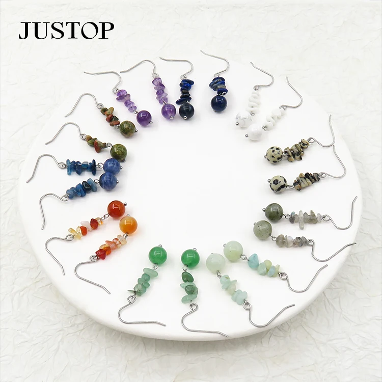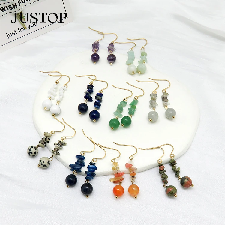 Simple Summer Vintage Geometric Earrings Multi-Color Seed Bead Tassel Pendant Natural Stone Gold Plated Stainless Wedding Gift