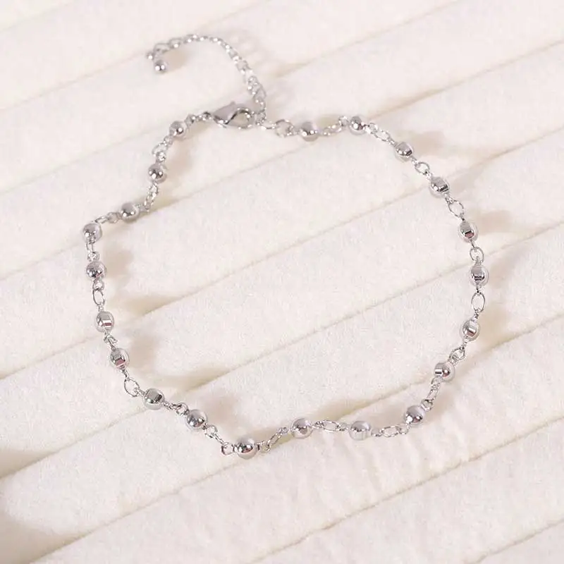 Fashion Jewelry Cute Stainless Steel Women Multi Station Ankle Bracelet Ball Beaded Chain Anklet Accessories