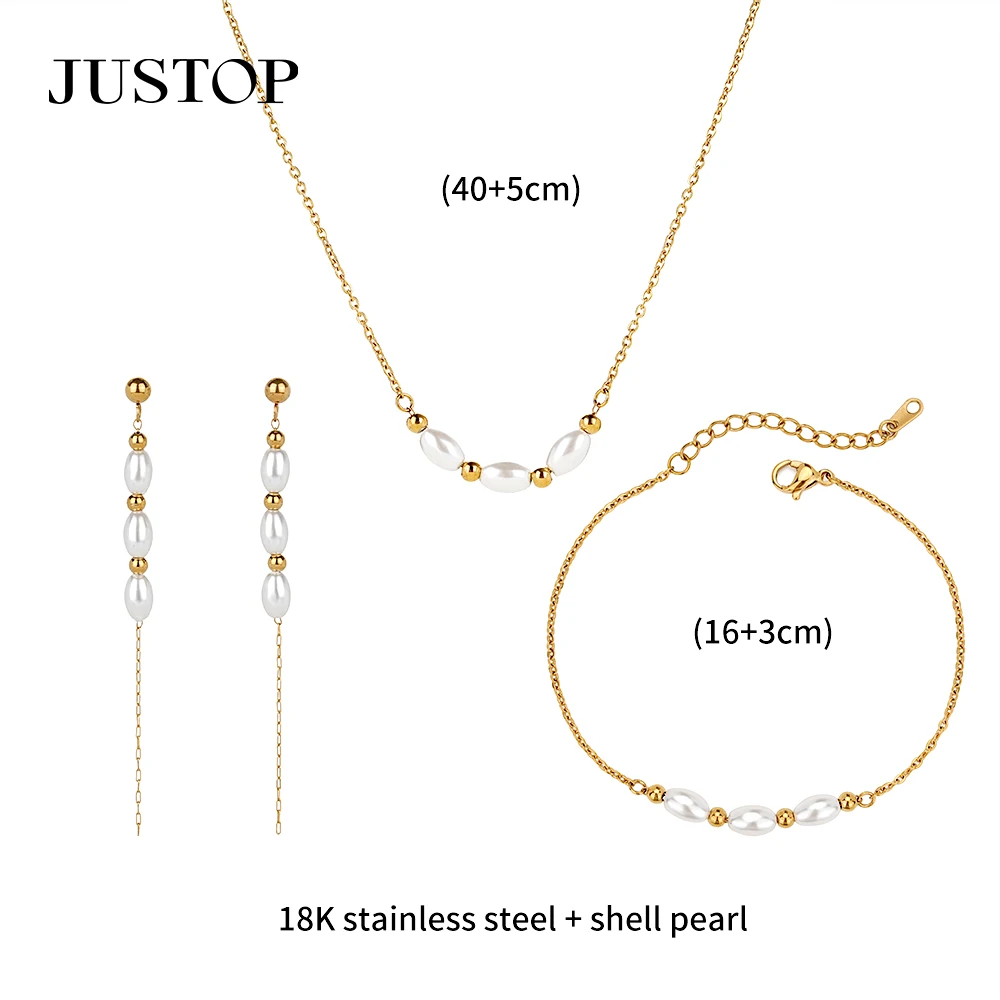 Wholesale Custom Stainless Steel PVD 18K 24K Gold Natural Pearl Shell Freshwater Earrings Bracelet Set Pearl Necklace Women