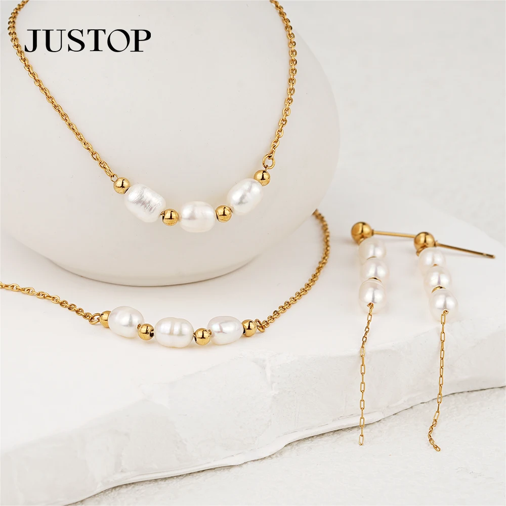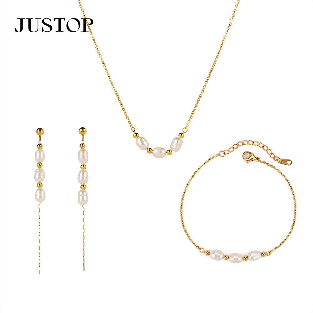 Wholesale Custom PVD 18K 24K Gold Natural Pearl Shell Freshwater Earrings Bracelet Fashion Jewelry Pearl Necklace with Charms