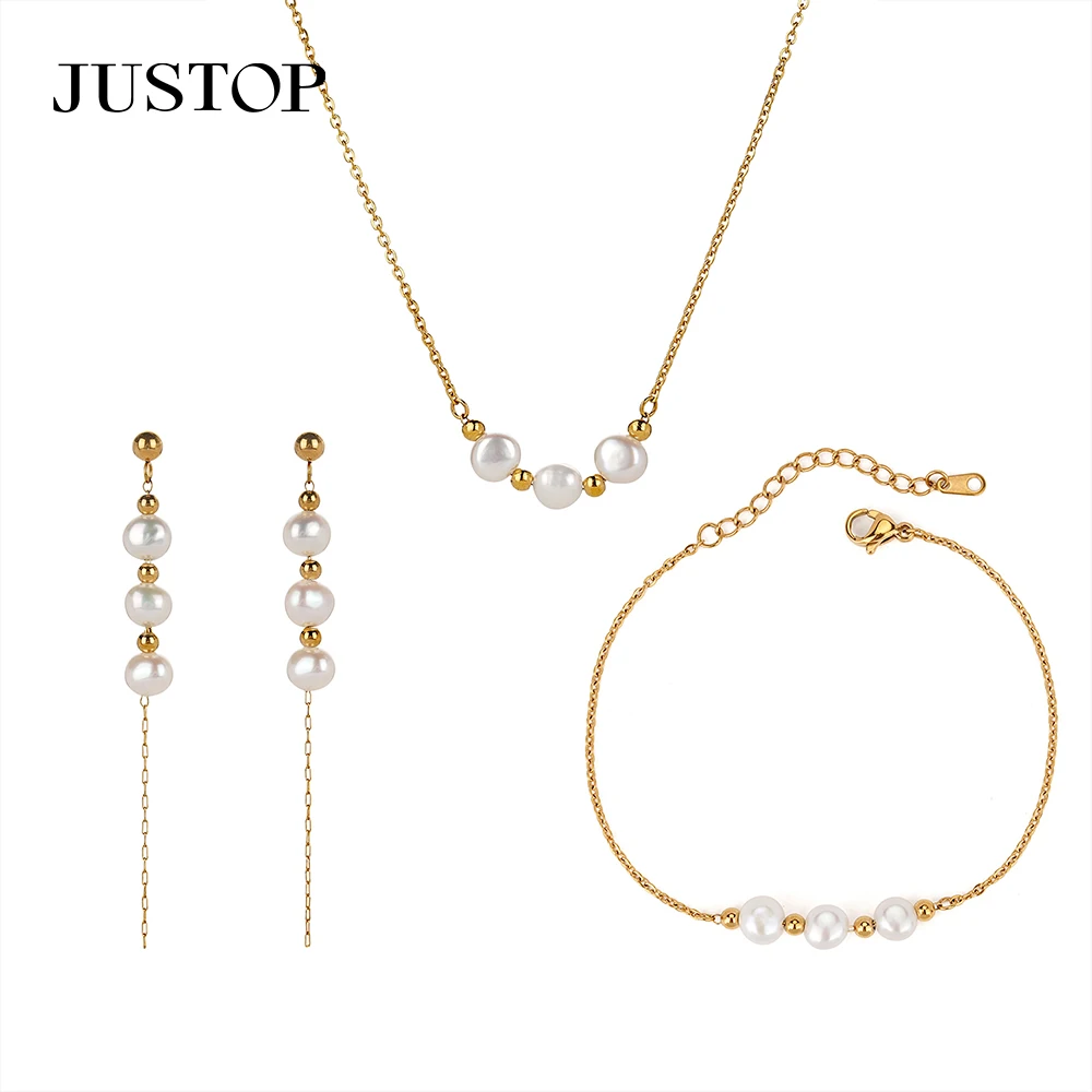 Wholesale Custom PVD 18K 24K Gold Stainless Steel Natural Pearl Shell Freshwater Earrings Bracelet Fashion South Sea Pearl