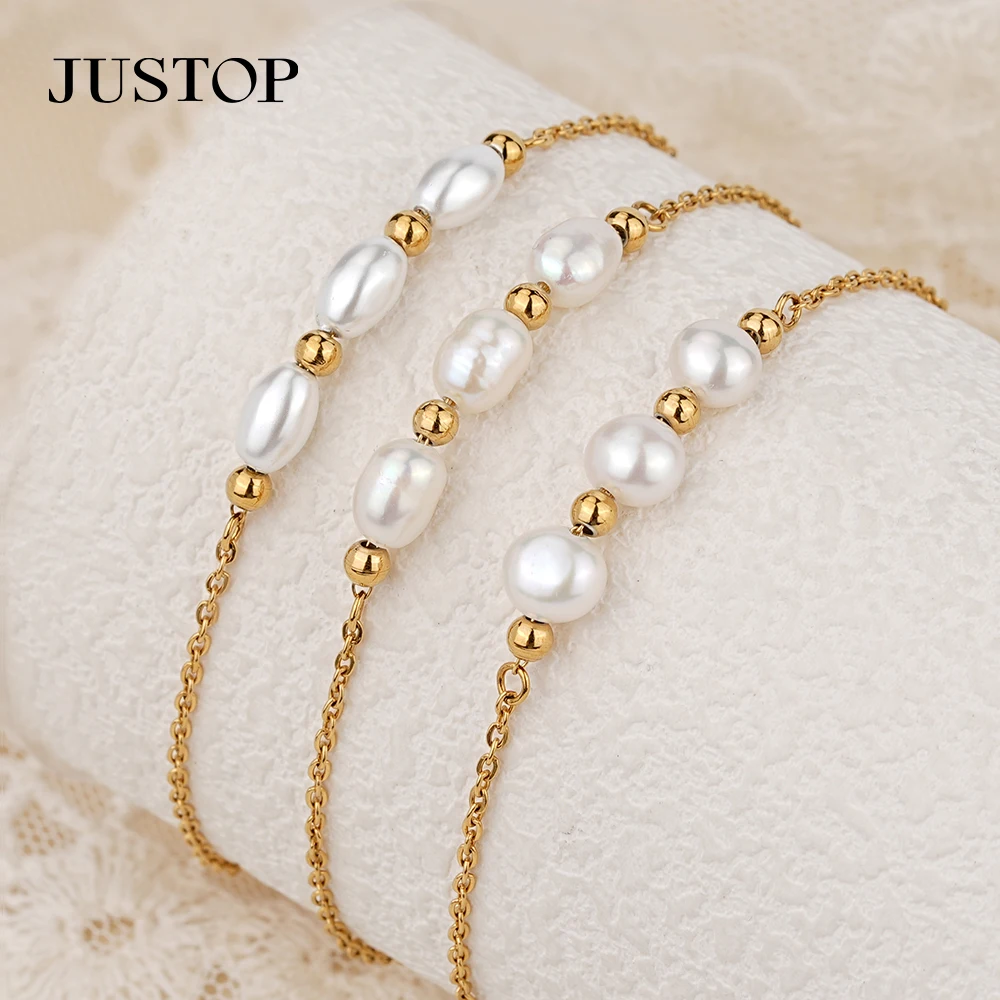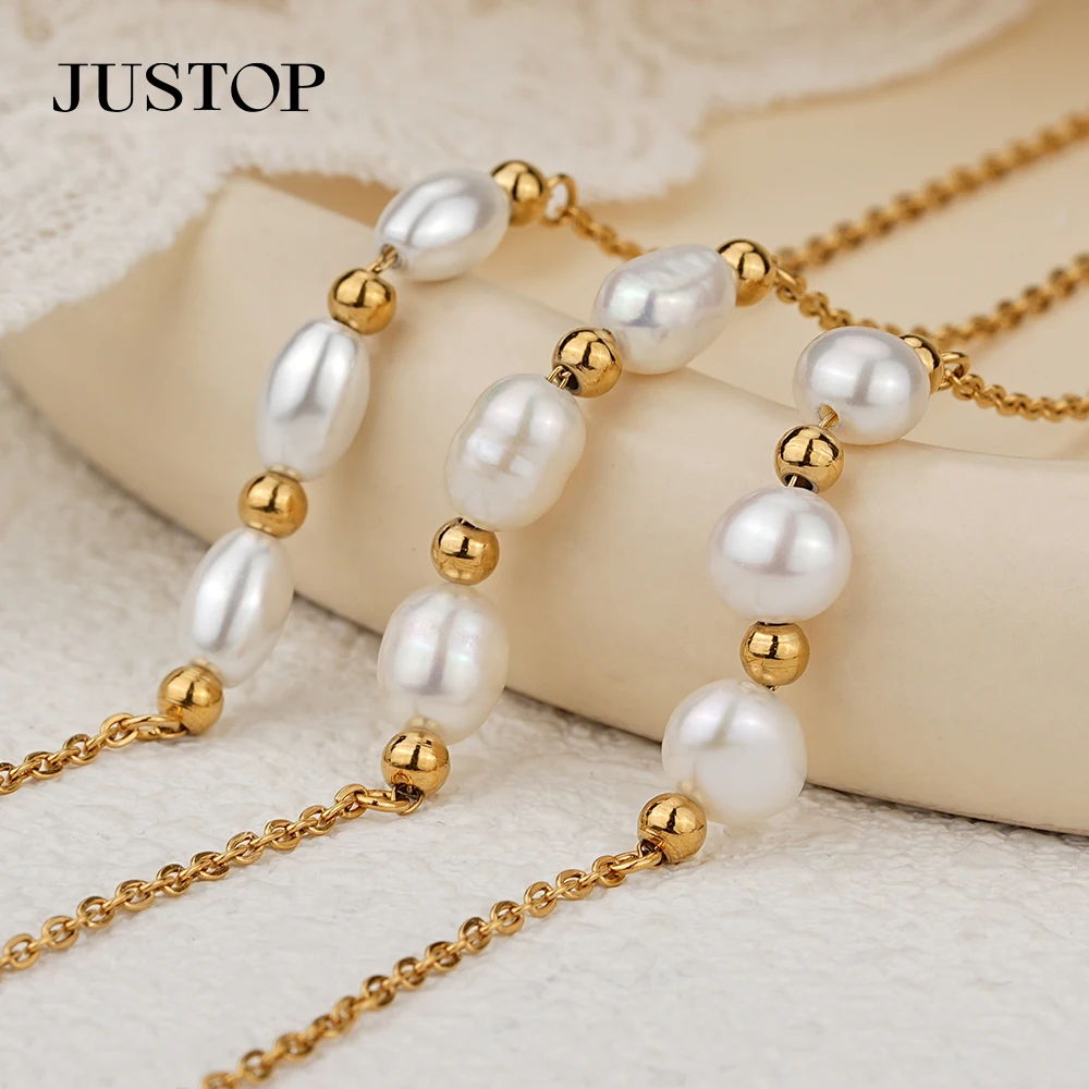 Wholesale Custom Stainless Steel PVD 18K 24K Gold Natural Pearl Shell Trendy Earrings Bracelet Necklace Jewelry Set