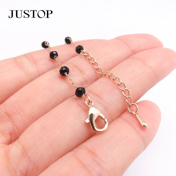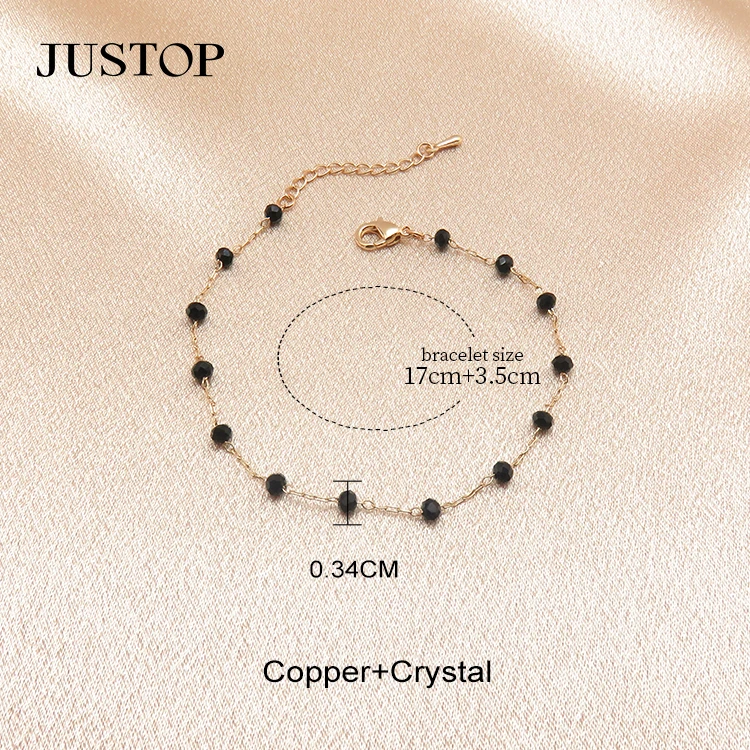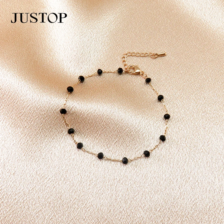 New Trendy 18K Gold Plated Brass Jewelry Black Agate Bead Chain Bracelet with Natural Stone Charm Bracelets for Women