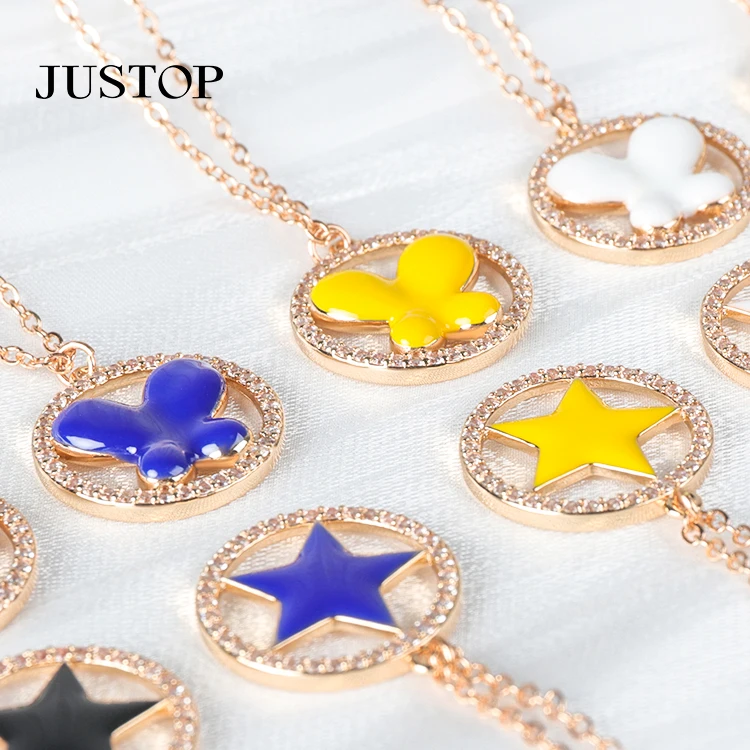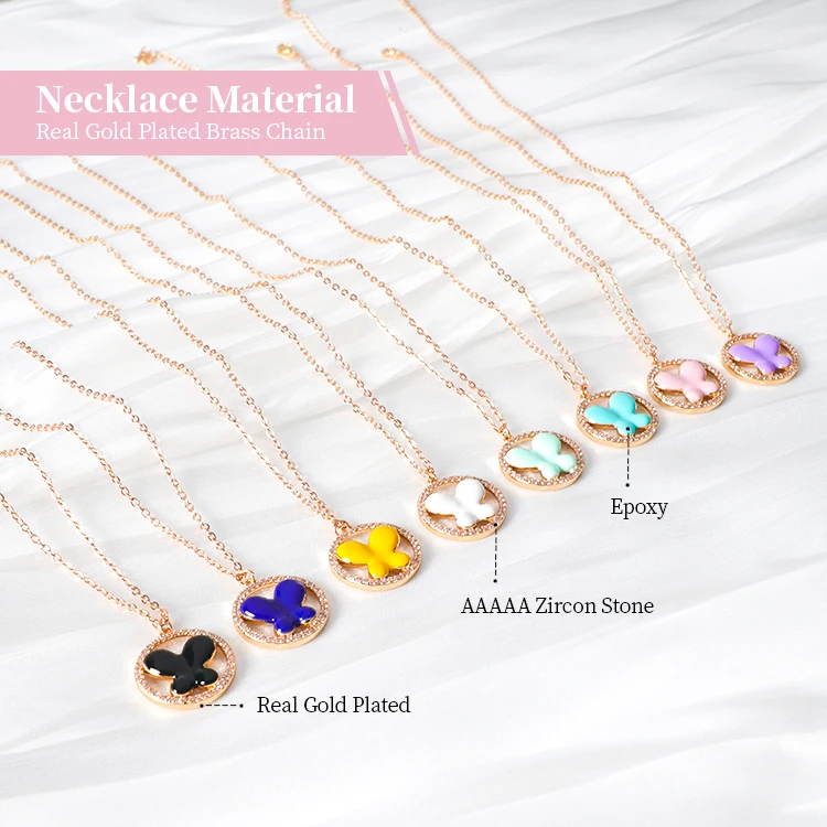 Women's Gold Link Chain Necklace with Colorful Zircon Butterfly Pendants Wholesale Fashion Jewelry Accessories for Weddings