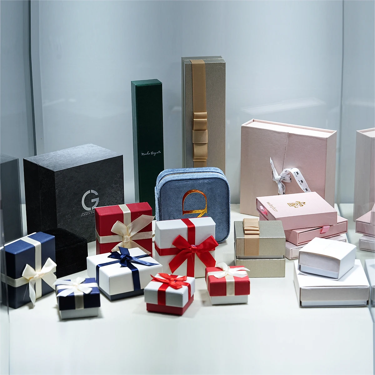 Wholesale Luxury Necklace Bracelet Earring Ring Packaging Jewellery Set Box Custom logo Premium Velvet Green Jewelry Box