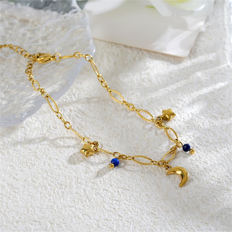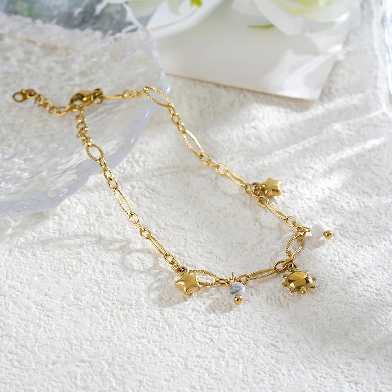Women's Stainless Steel Geometric Sun Moon Charm Bracelet with Stone Waterproof Wrist Jewelry Trendy Fashion Gift Idea