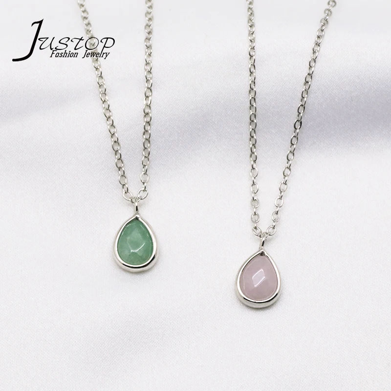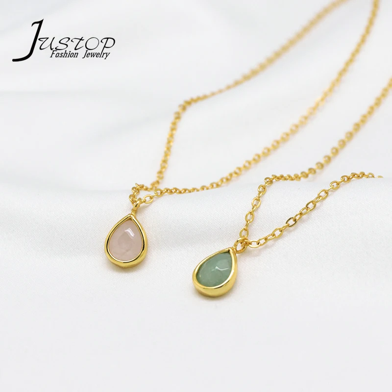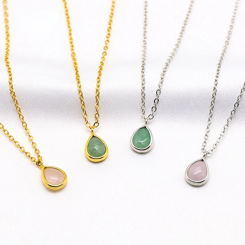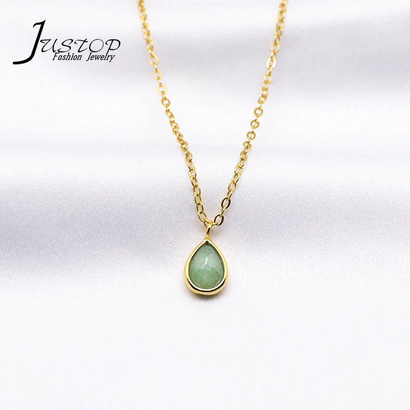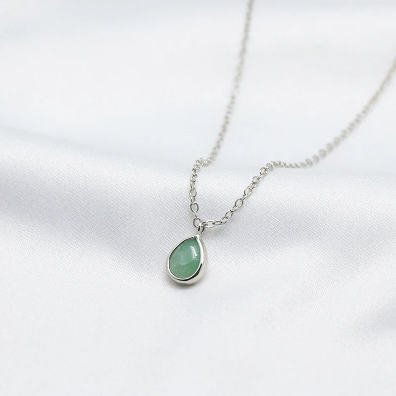 Fashion New 18K Gold Light Luxury Water Drop Shaped Green Aventurine Pendant Choker Necklace