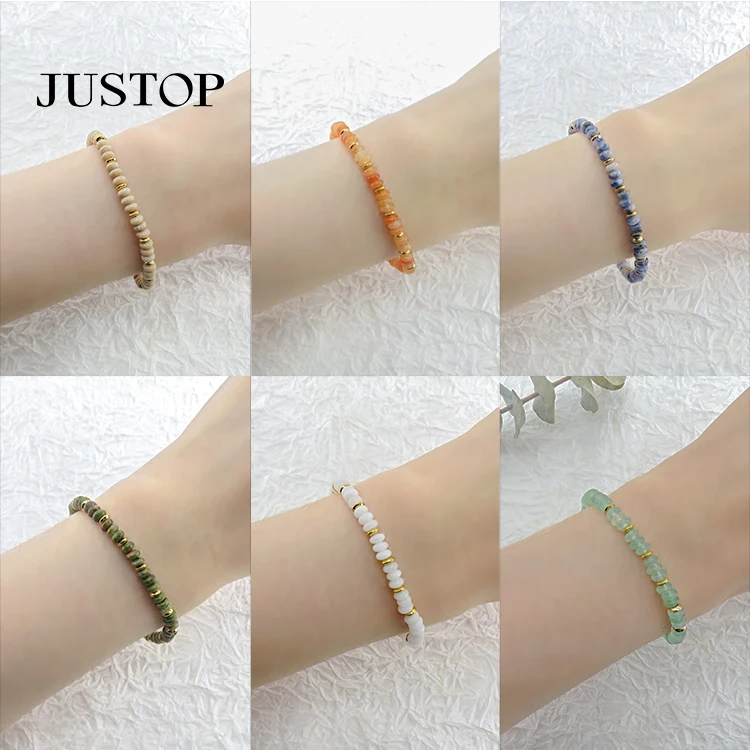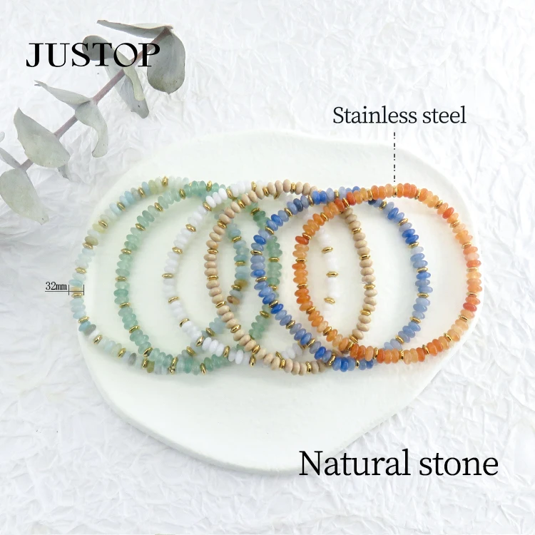 Fashion Jewelry Handmade Women Geometric Trendy Natural Stone Delicate Crystal Stainless Steel Gold Plated Beads Bracelet