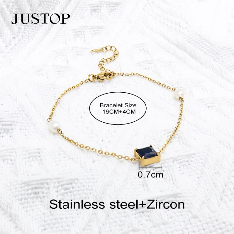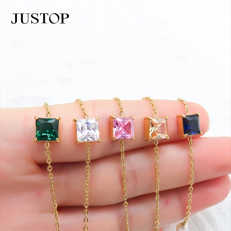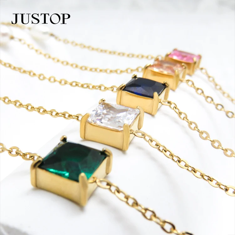 14k Gold Plated Square Wave Chain Combination Zircon Pendant Bracelet Stainless Steel Colored Zircon Emerald Bracelet for Women