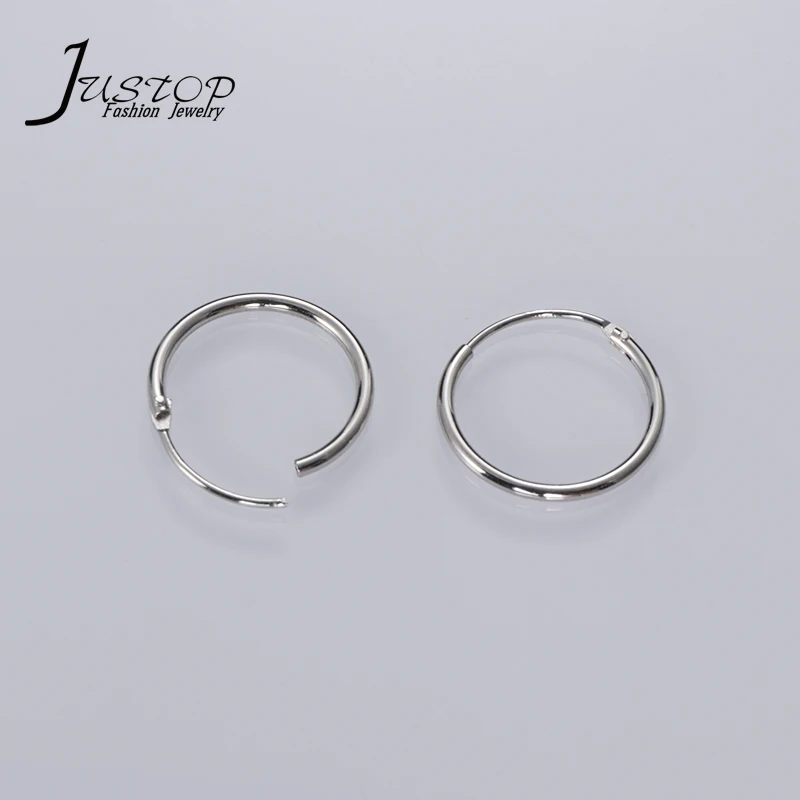High Quality Simple Real S925 Sterling Silver Women Round Hoop Earrings