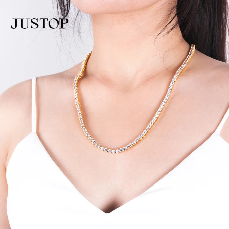 Hip Hop Vacation Unisex Fashion Jewelry Chokers Necklace Brass Gold Plated Iced Out CZ Tennis Chain