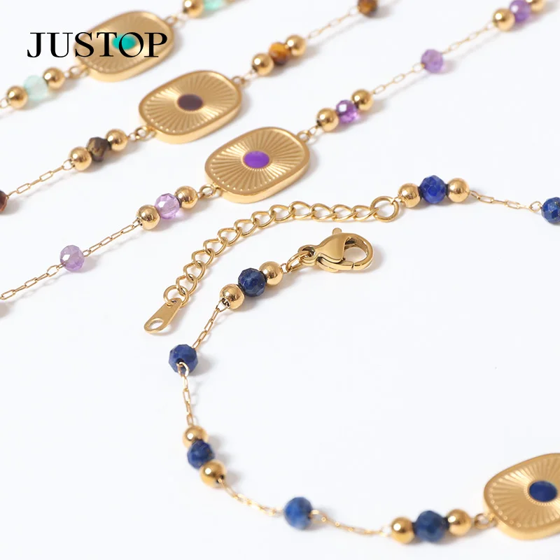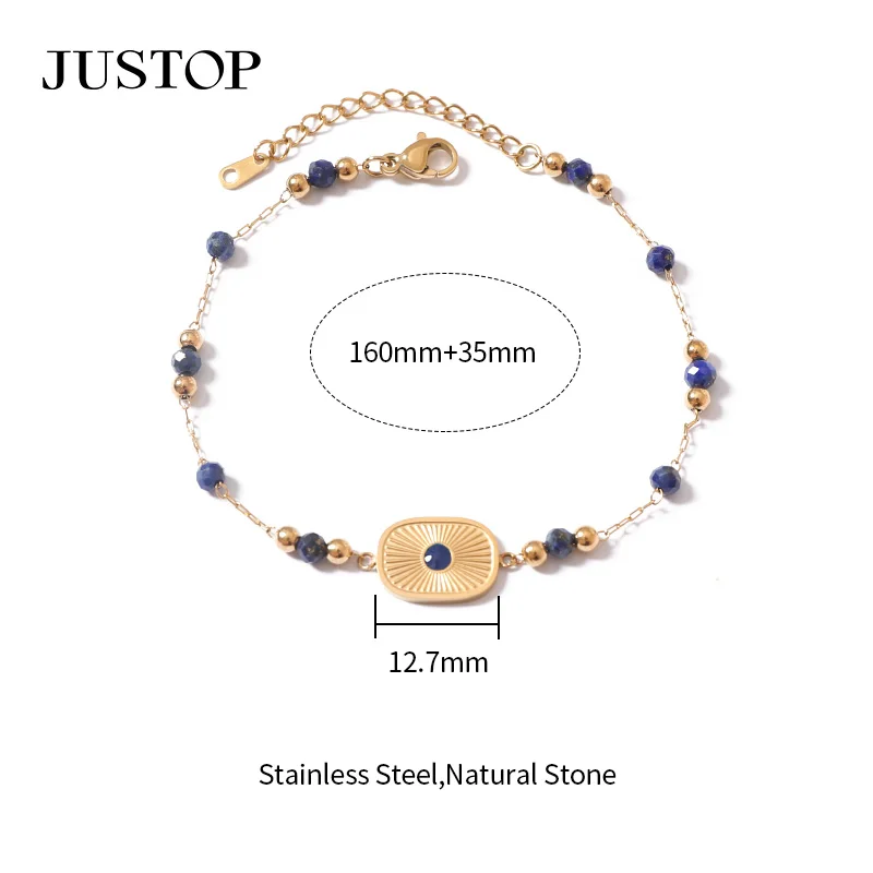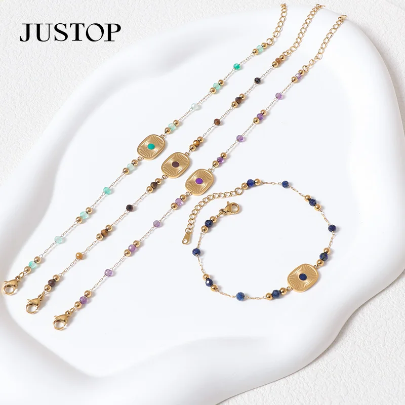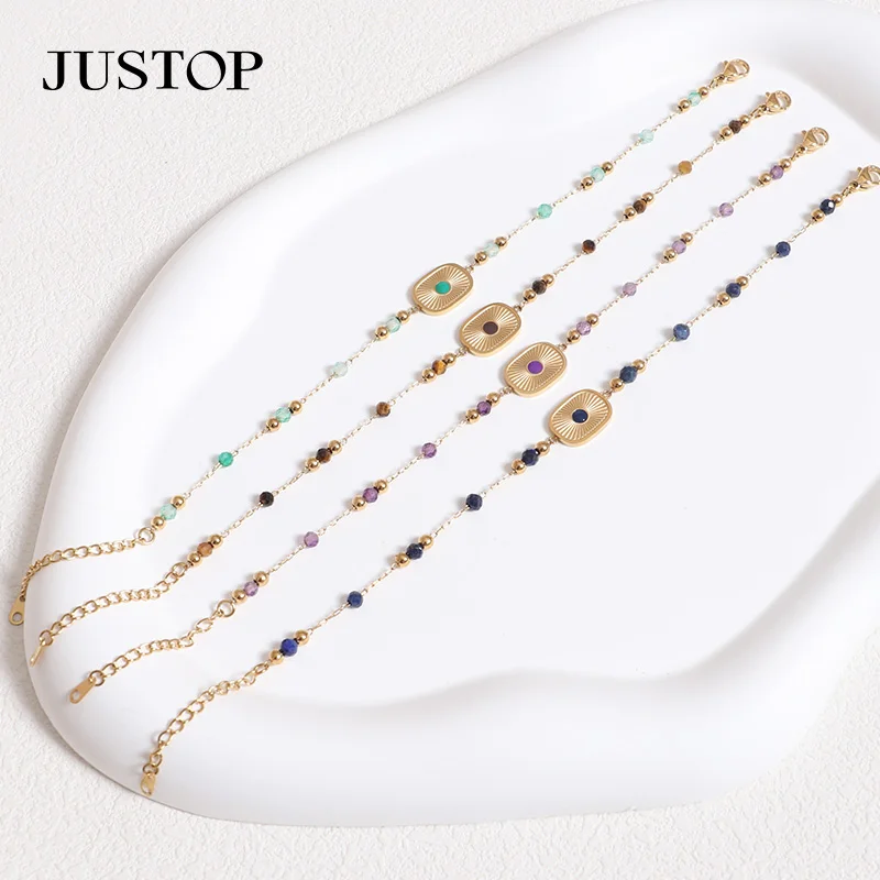 Fancy Bijoux Turquoise Gemstone Beaded Bracelet Elegant Natural Stone Stainless Steel Fashion for Women Girls Ball Shape Pattern
