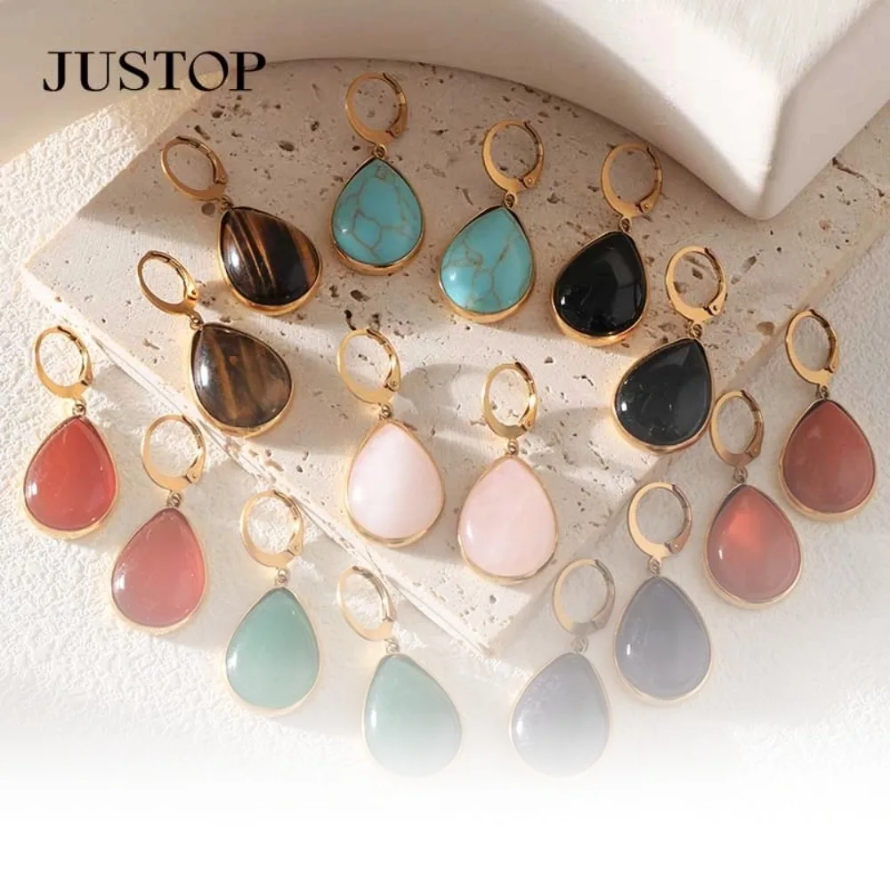 Bulk Mixed Stone Teardrop Earrings Natural Gemstones Gold Pendant Women Hook Earring Fashion Gifts