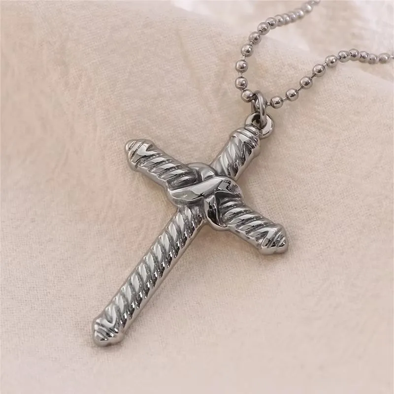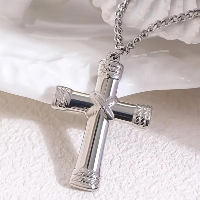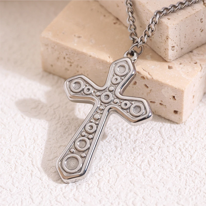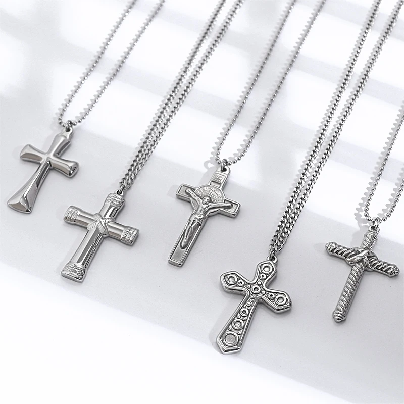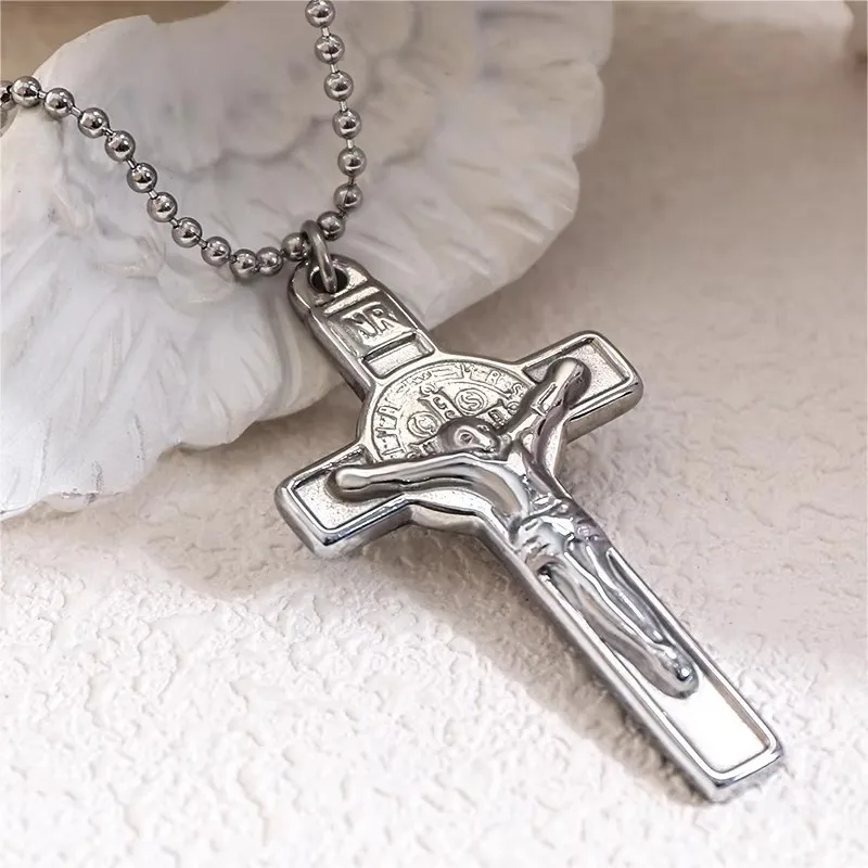 Original Design Simple Men's Stainless Steel Jesus Cross Pendant Necklace IP Plated Bead Chain Trendy Christian Wholesale