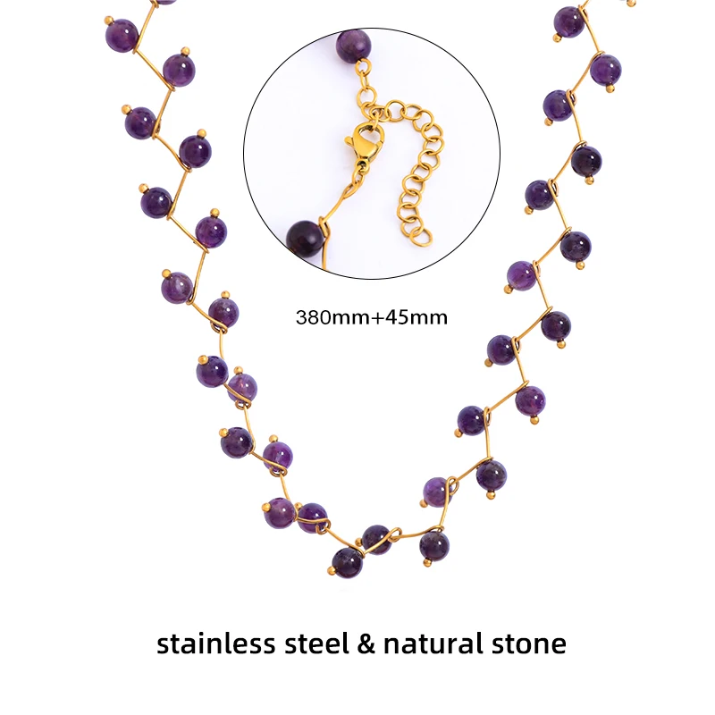 Women's Real Stainless Steel Necklace Amethyst Stone Ball Pendant Waterproof IP Choker Pin Chain Link Ultimate Power Necklace