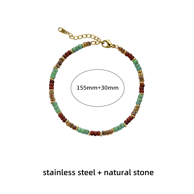 Adjustable Trendy Women's Boho Style Natural Stone Beaded Bracelet 18K Gold Plated Stainless Steel Bangles Anniversary Jewelry