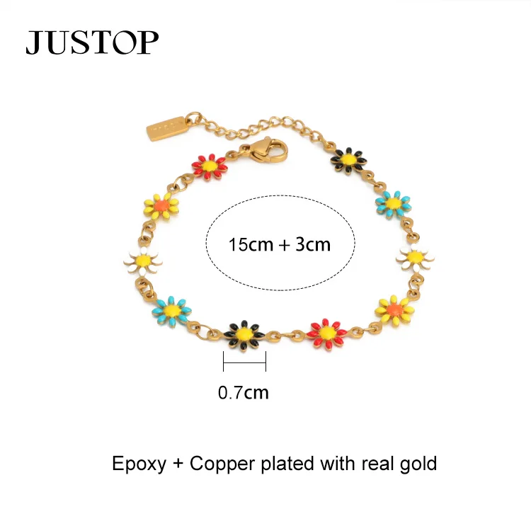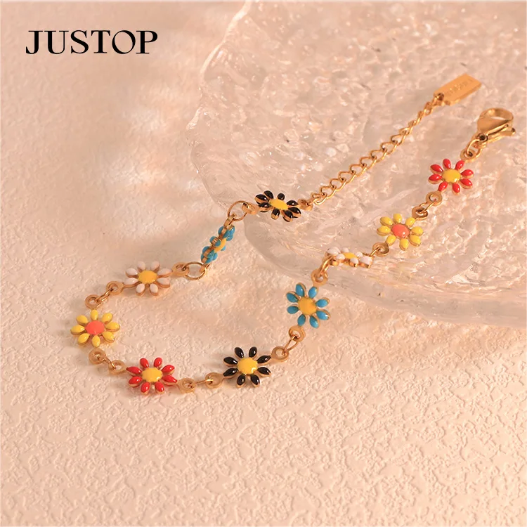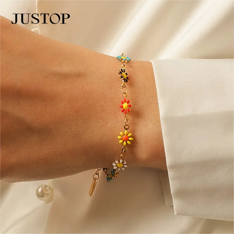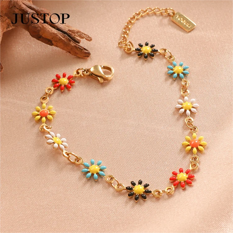 Handmade Colorful Enamel Floral Flower Bangle Bracelet Women Jewelry Stainless Steel Oil Dripping Flower Jewelry