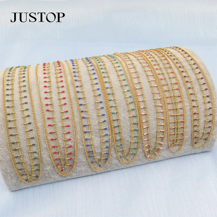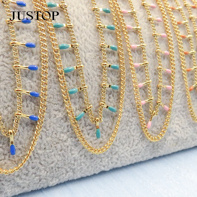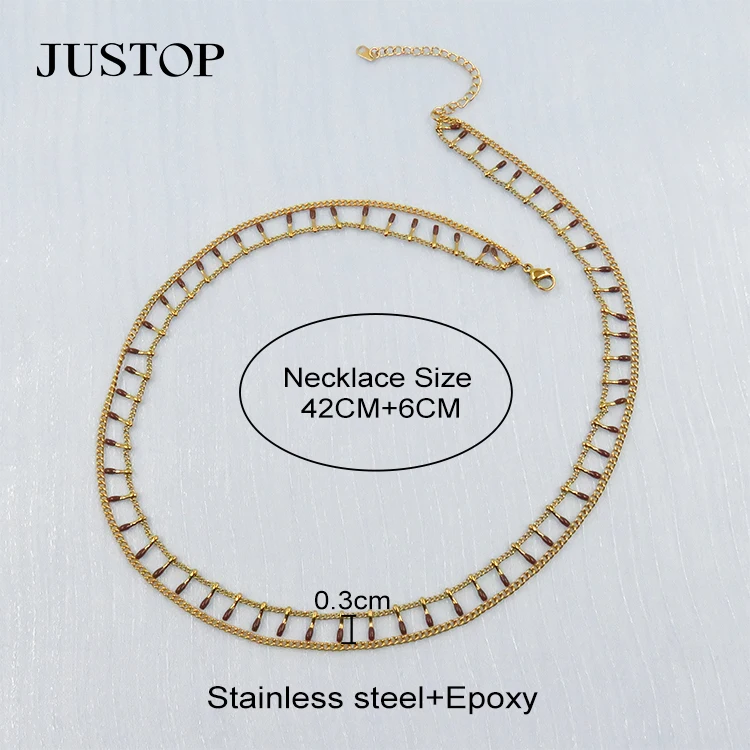 Minimalist Colorful Enamel Chain Necklace Double Layered Stainless Steel Collar Necklaces