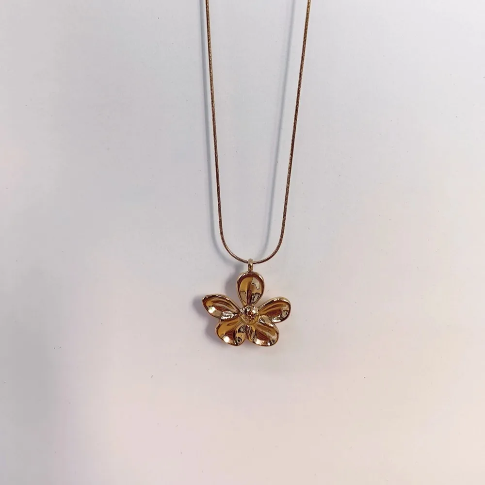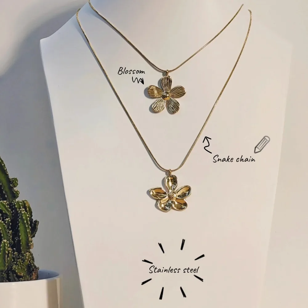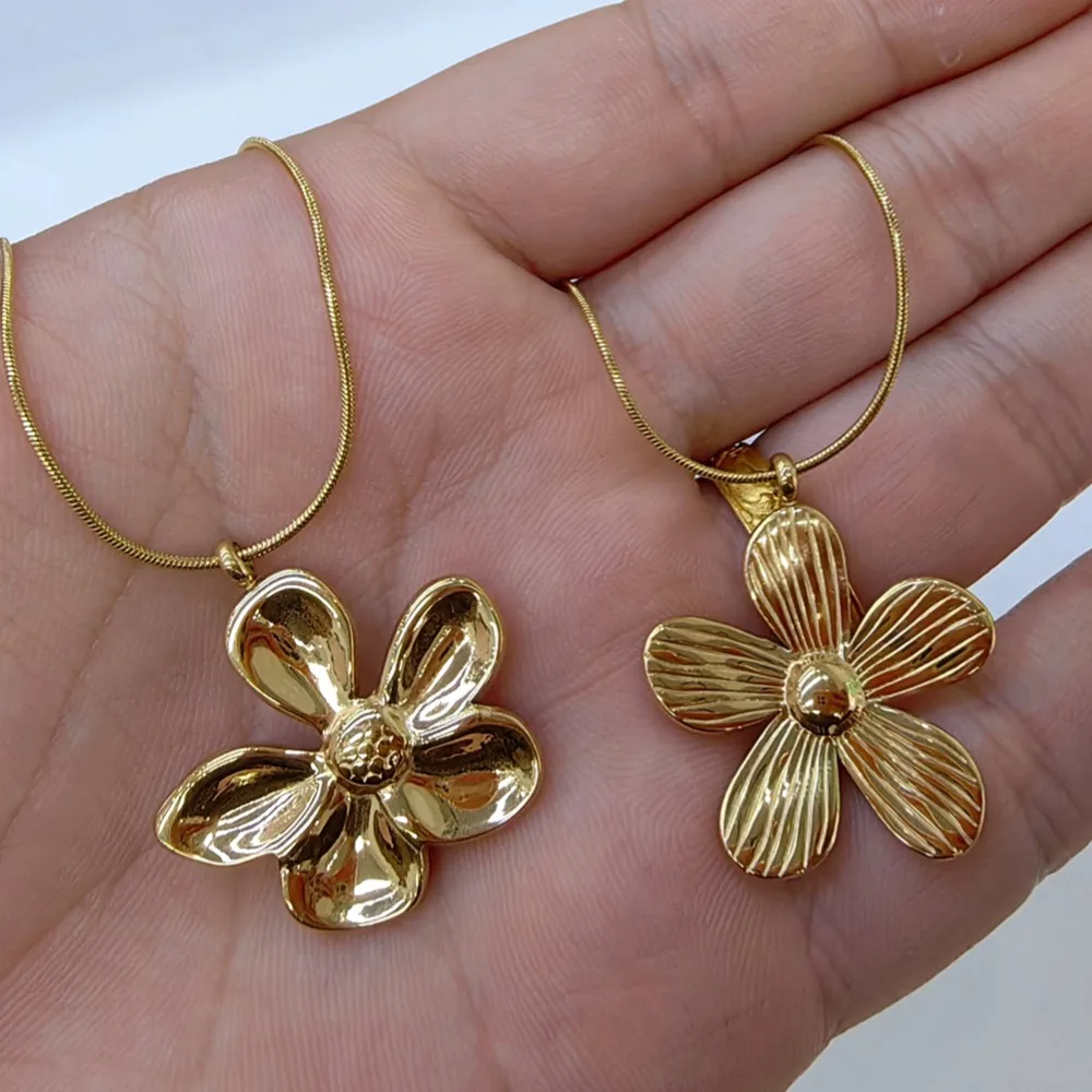 JUSTOP Women's Premium Design Stainless Steel 18k Gold Plated Snake Chain Vintage Summer Autumn Trend Flower Pendant Party