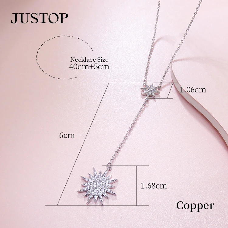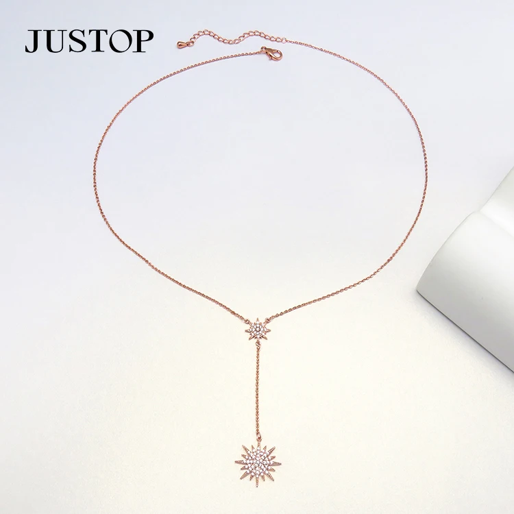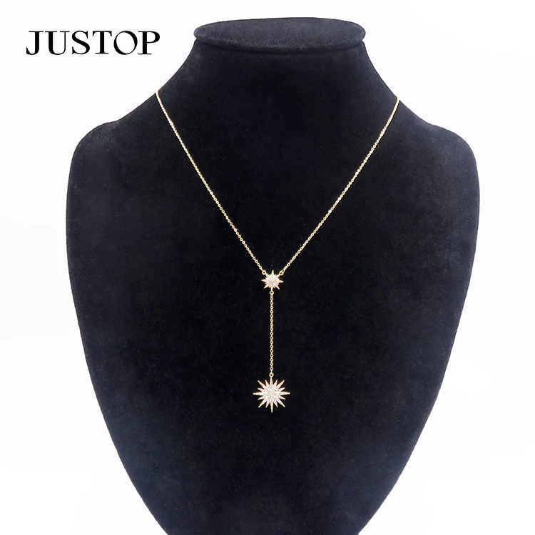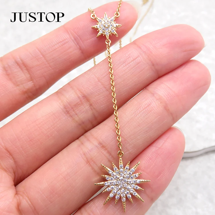 Women's Luxury Fashion Jewelry Zirconia Stainless Steel 18k Gold Plated High Quality Double Star Pendant Necklace