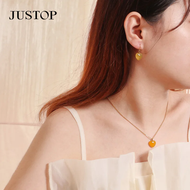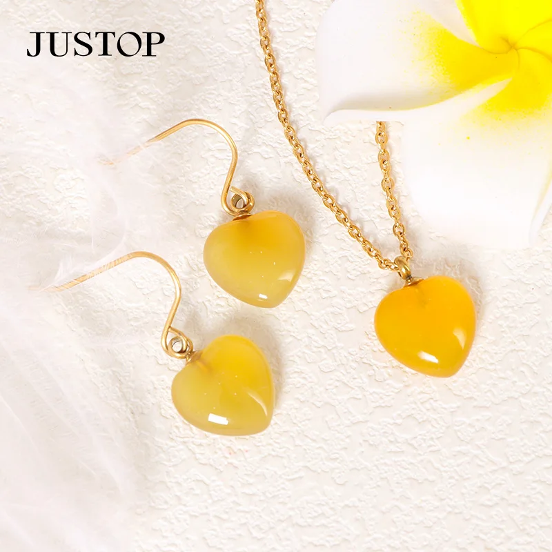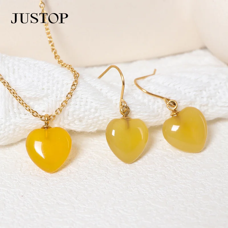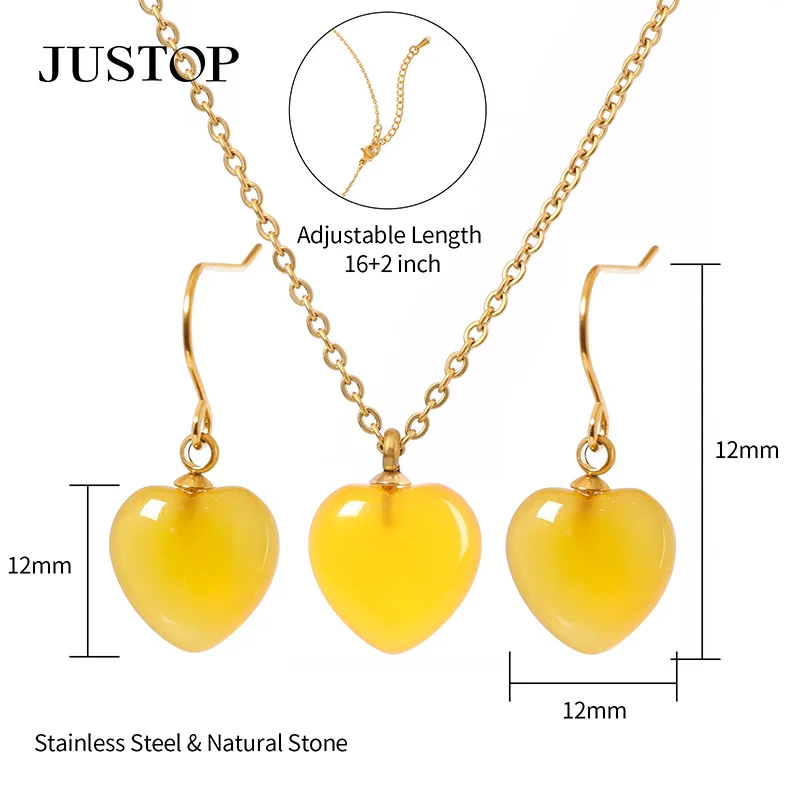 Fashion Heart Stainless Steel 18K Gold Plated Crystal Earrings and Necklace Set for Women Engagement Jewelry