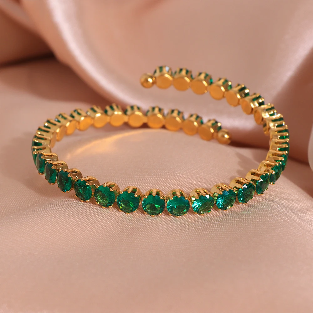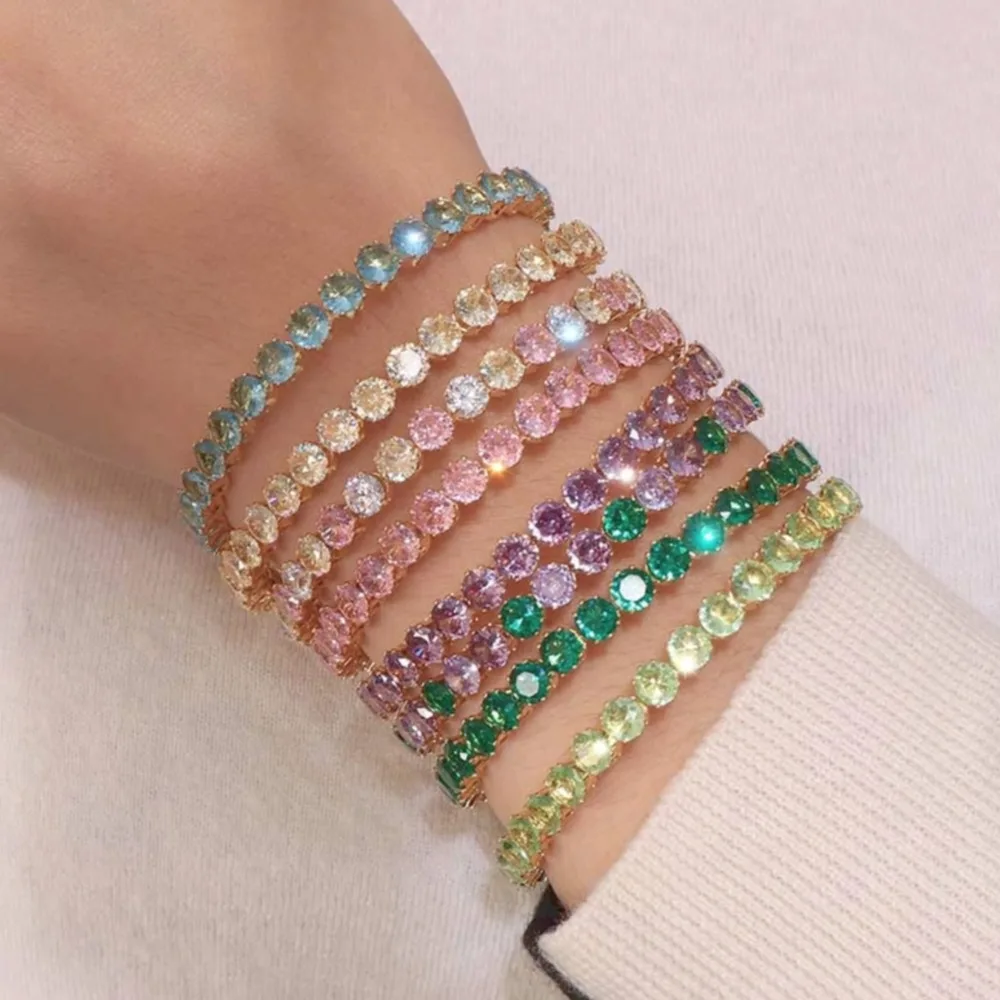 Luxury Classic Design Tennis Bracelet Cubic Zircon 18K Gold Plated Stainless Steel Iced Out Blossom Gradient Color Women Bangle