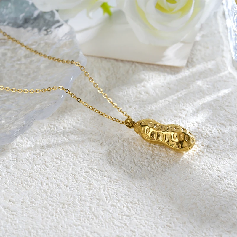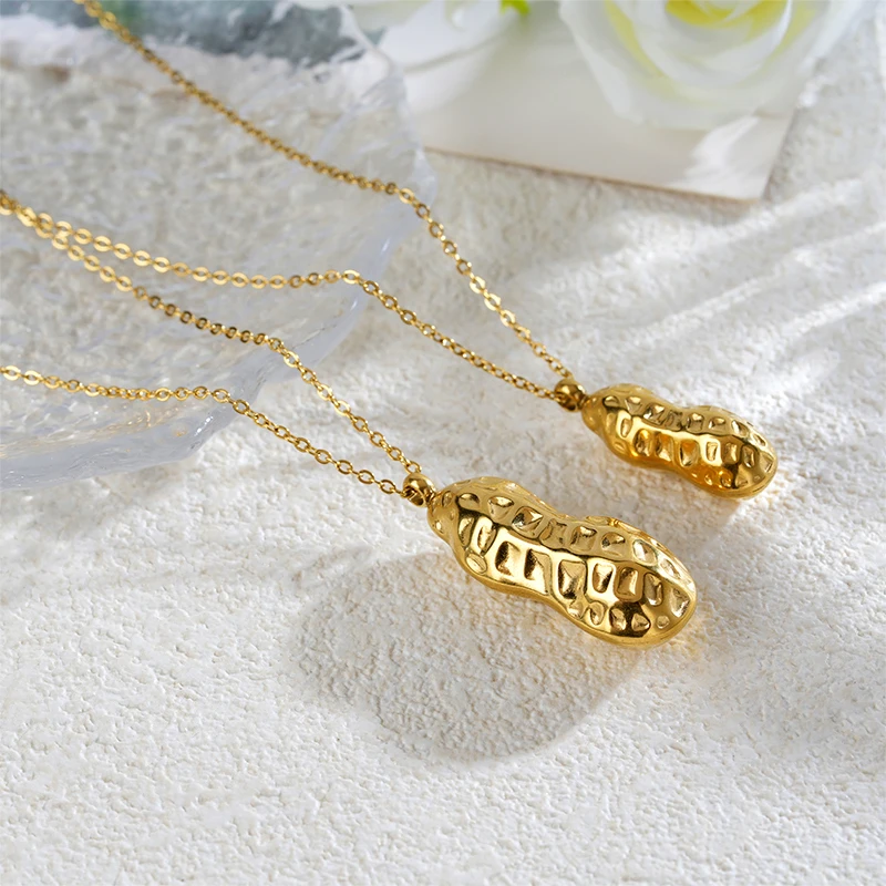 Stainless Steel 18K Gold Plated Peanut Pendant Necklace Fashion Design Link Chain Hypoallergenic Jewelry