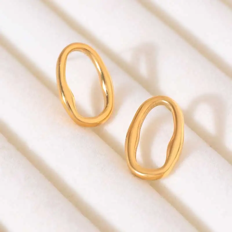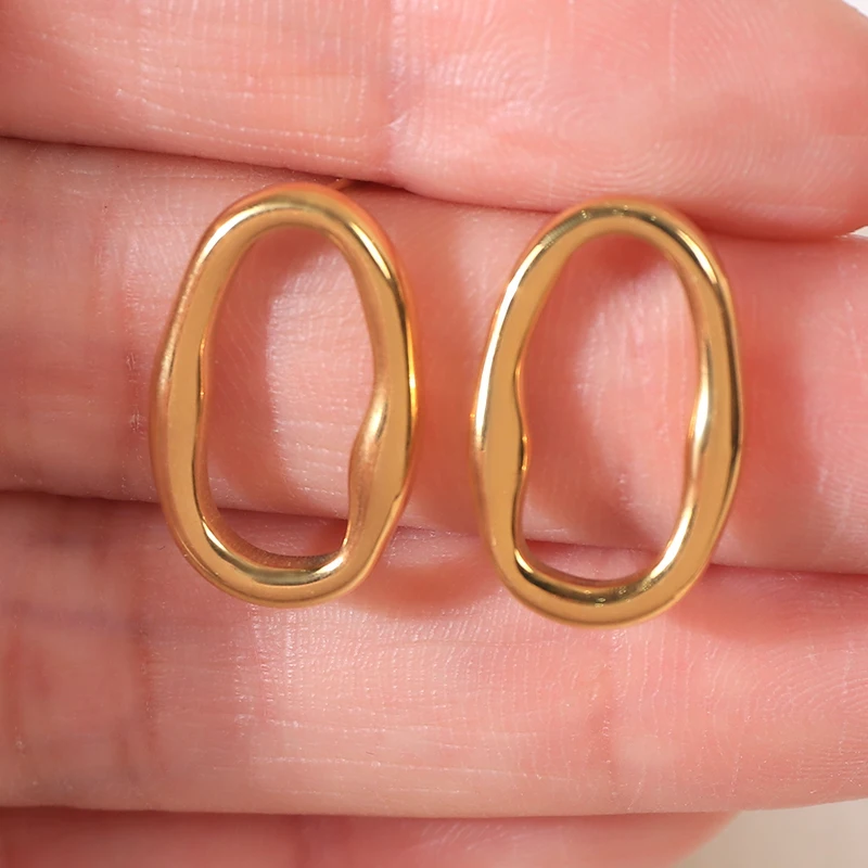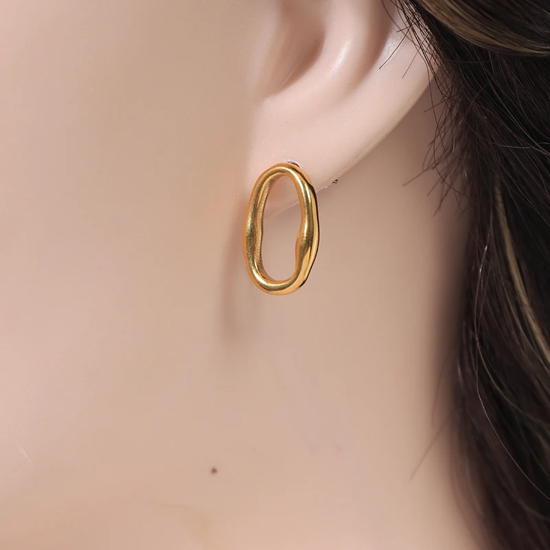 French Vintage Geometric Stainless Steel Stud Earrings Irregular Ellipse Minimalist Unisex Jewelry Hypoallergenic Luxury Party