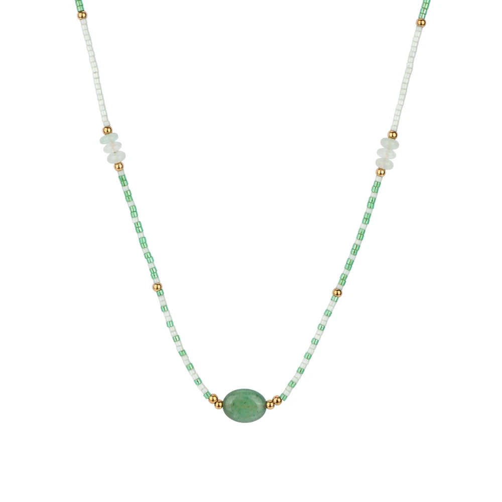 Trendy Chakra Obsidian Healing Crystals Reiki Stone Meditation Balance Stainless Steel 18K Gold Plated Beaded Green Aventurine