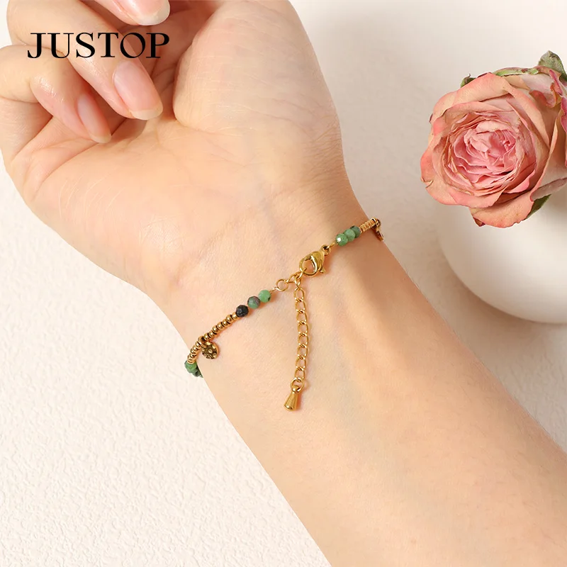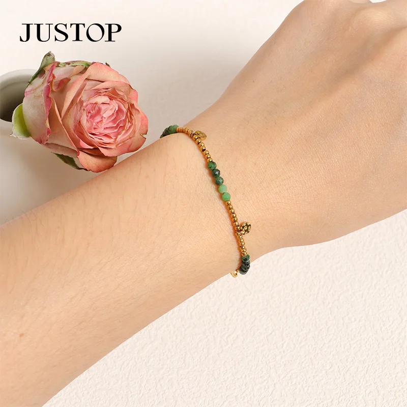 High Quality Green 18K Gold Plated Stainless Steel Classic Bell Shape Crystal Rhinestone Beaded Charm Bracelet for Women Party