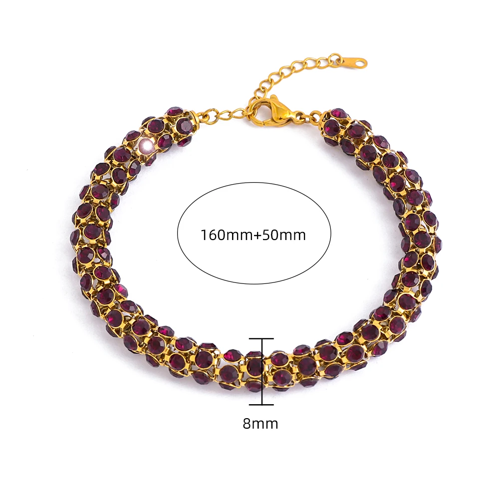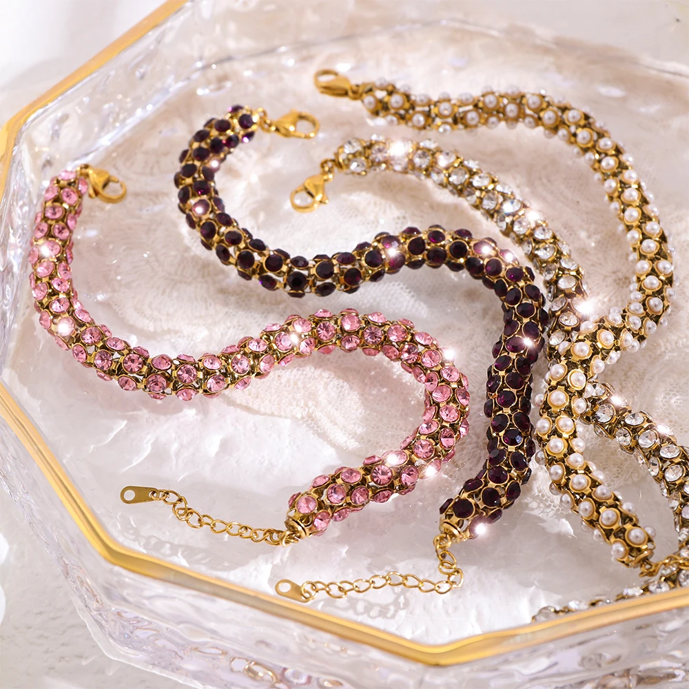 Adjustable Handmade Stainless Steel Bracelet with Rhinestones Stylish Crystal Bangle for Women Fashion Jewelry